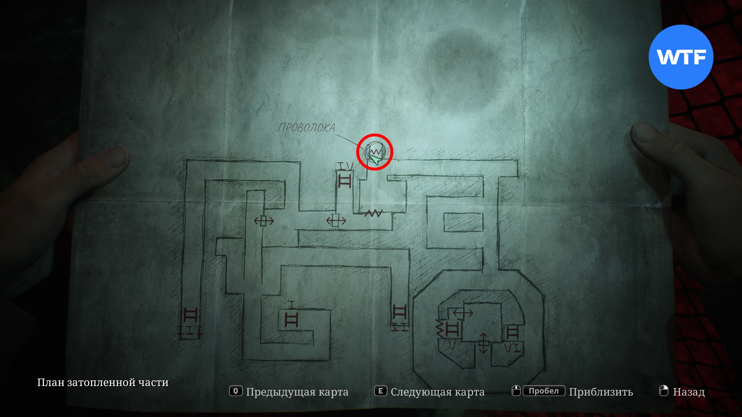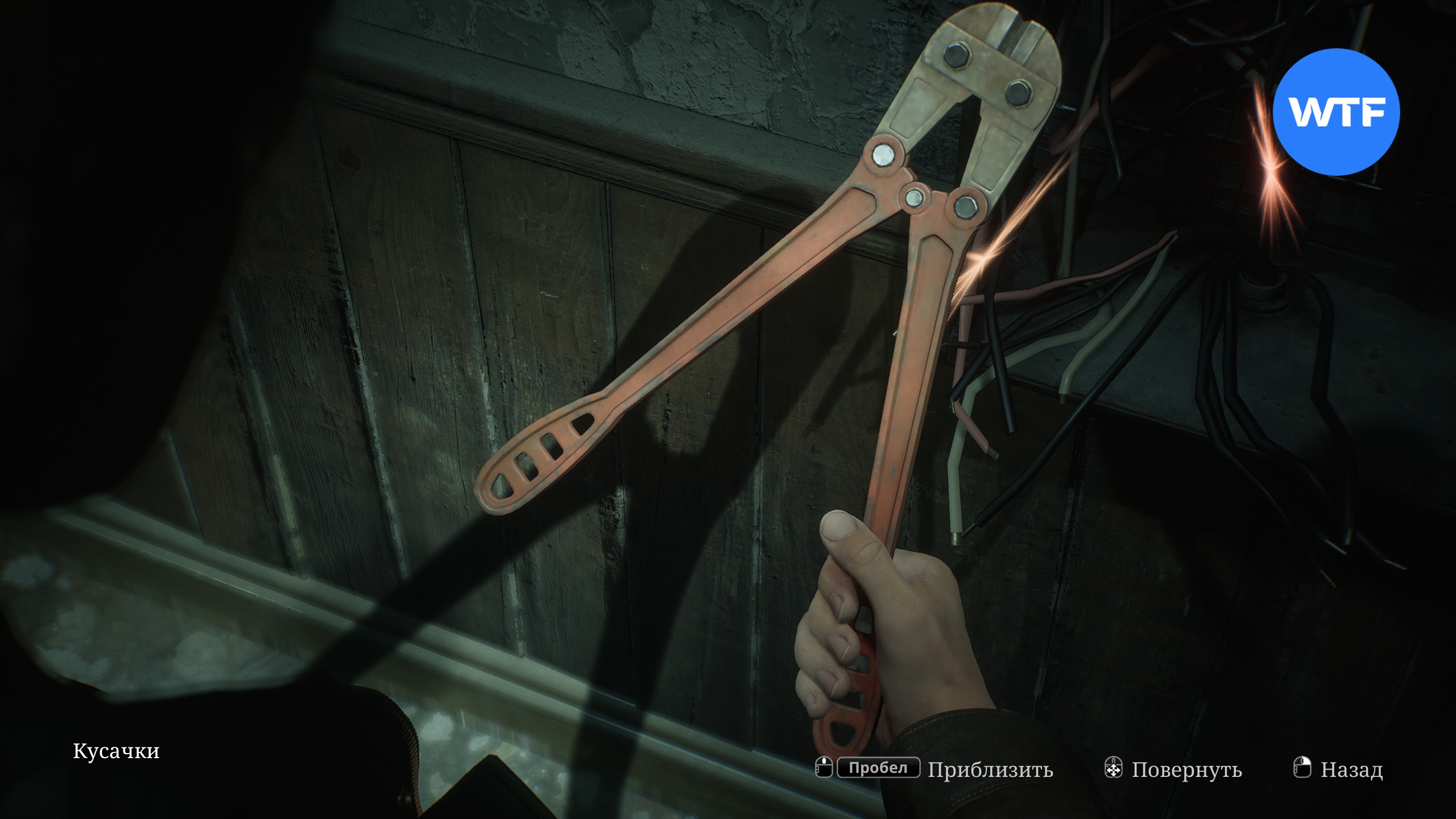 Поднявшись обратно наверх и пройдя по коридору вперед до упора, вы окажетесь в комнате, где можно подобрать кусачки с искрящегося щитка.
