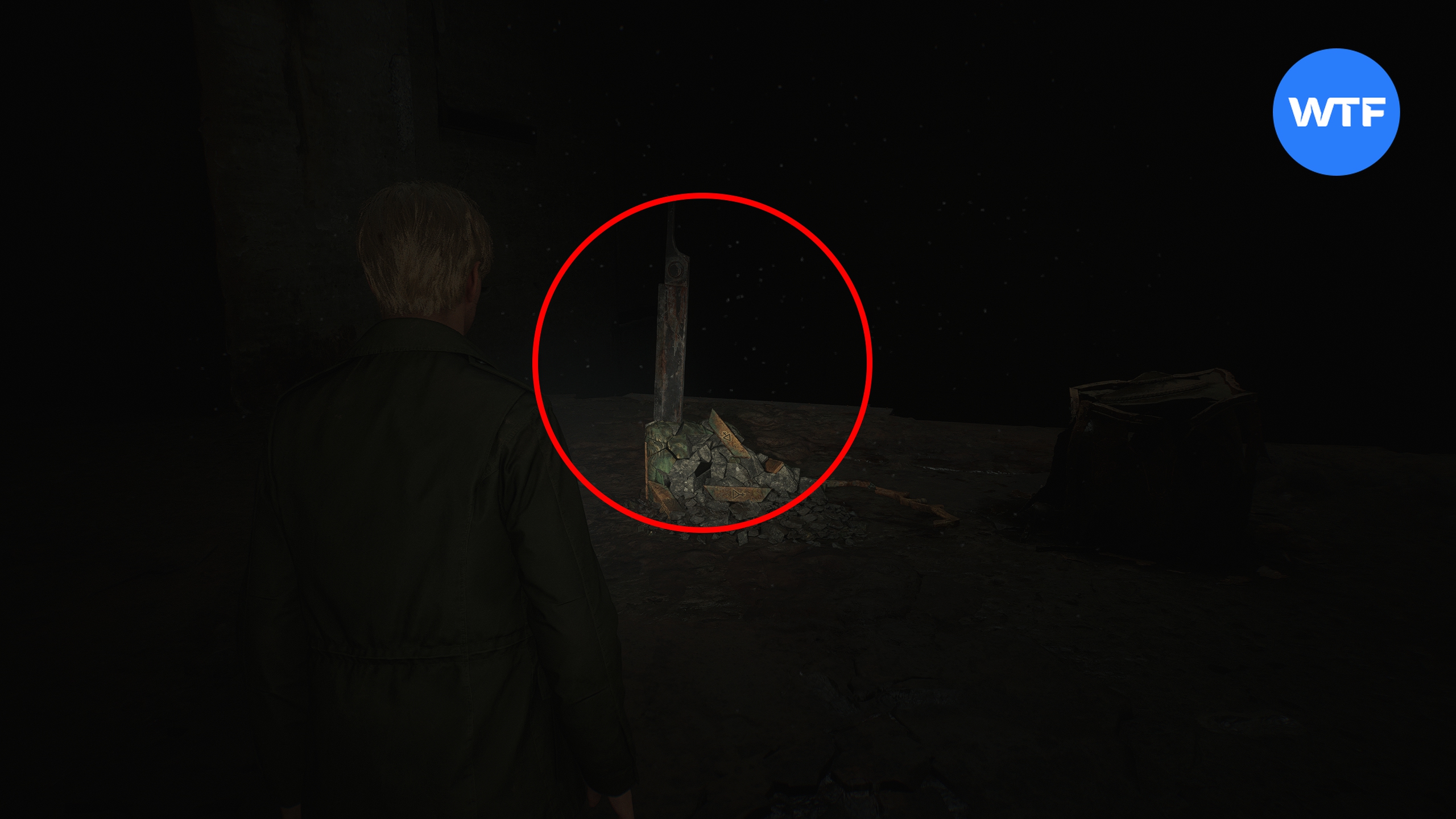 Вернувшись из разрушенной области, вы увидите, что вращающийся куб разрушен, а рядом с ним торчит огромный меч. Возьмите этот меч и идите к странной стене — он позволит вам пройти через неё.