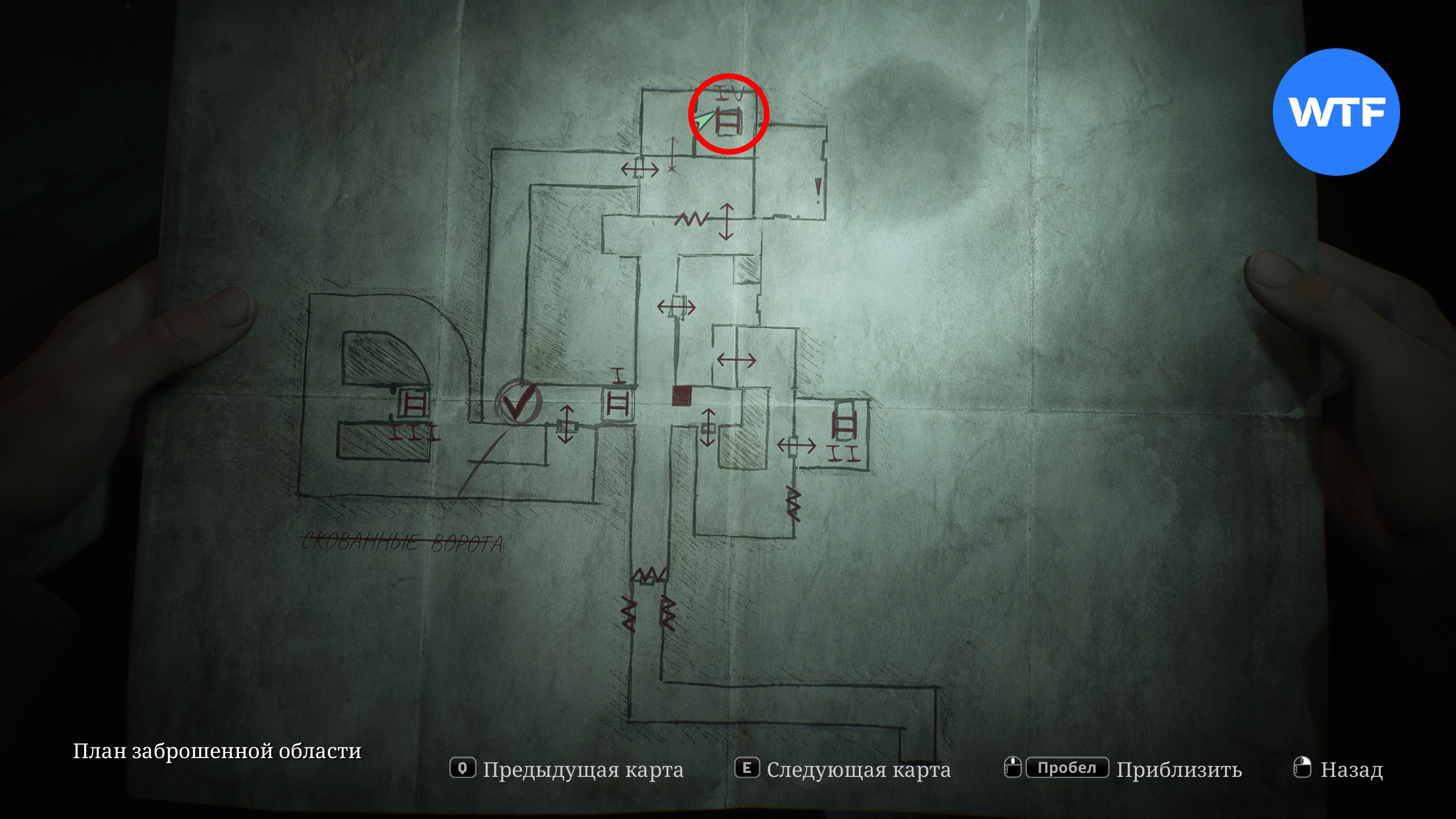 Вернитесь к скованным воротам, используйте на них ключик, а затем поверните вентиль, чтобы освободить проход. Затем бегите по коридору вперед и в следующей комнате подкатите тележку к стене, чтобы пролезть через дыру под потолком. Это приведет вас к лестнице IV.