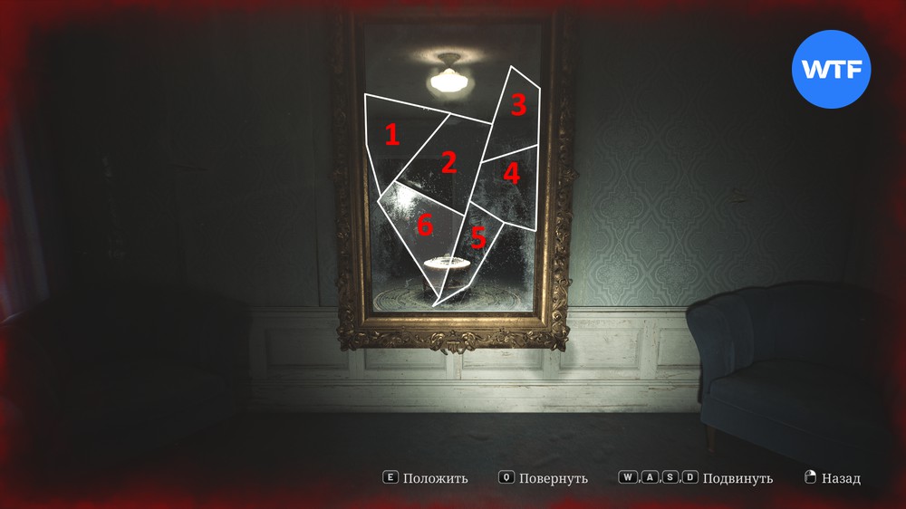 На скриншоте ниже мы показали верное расположение осколков для решения головоломки с зеркалом. Вы должны вращать их, чтобы установить в раму правильной стороной и собрать пазл.