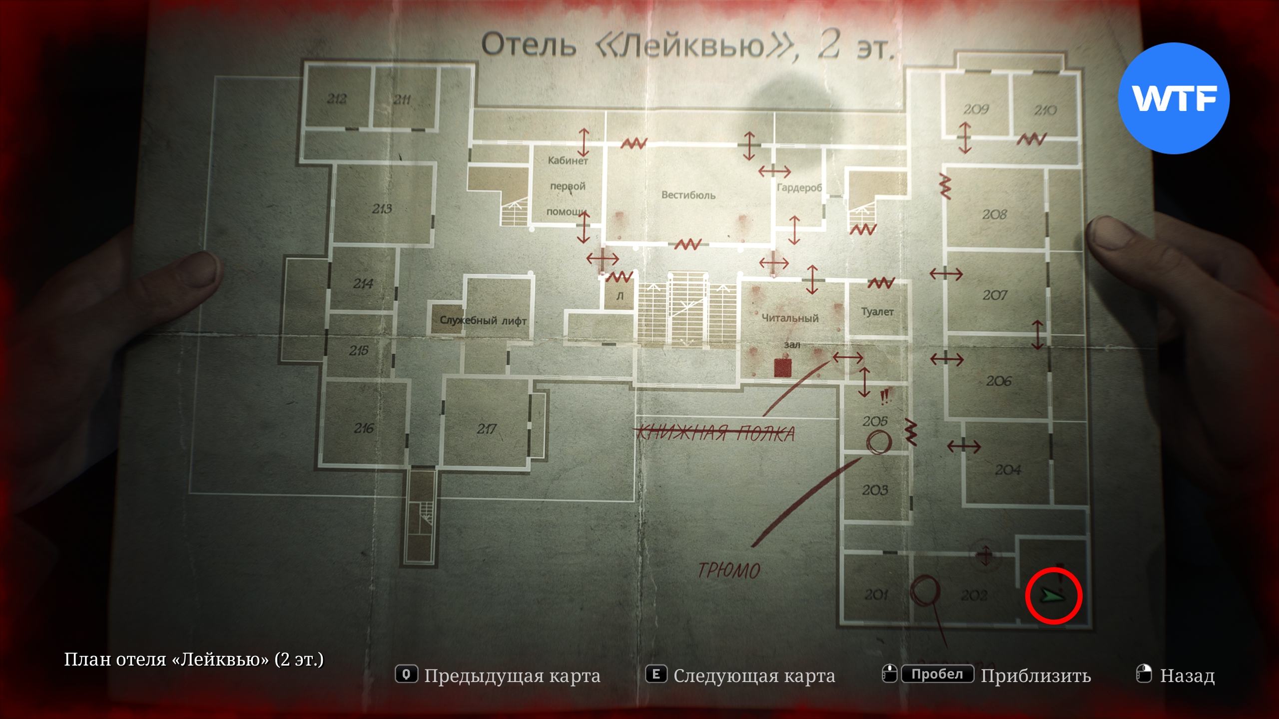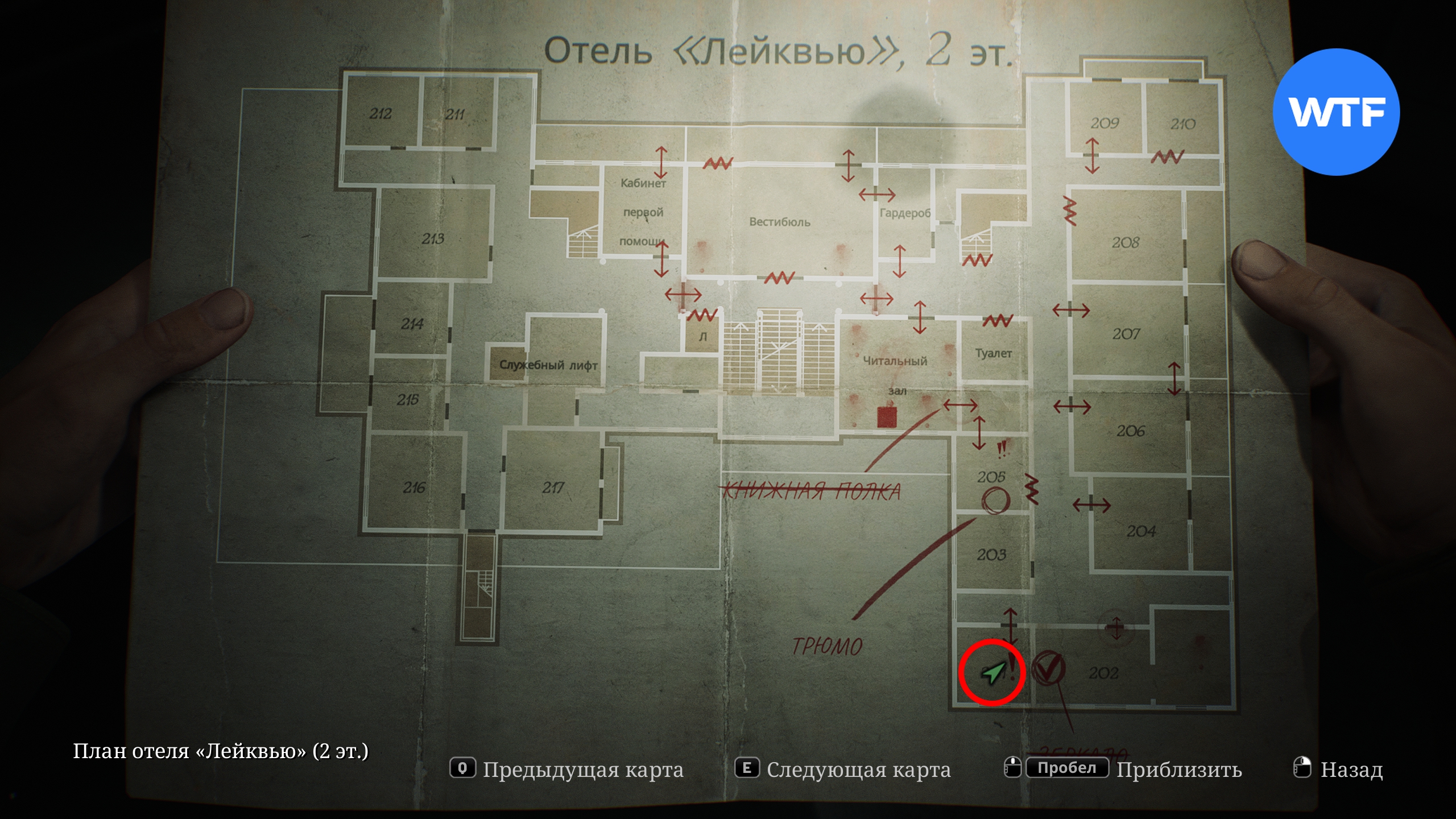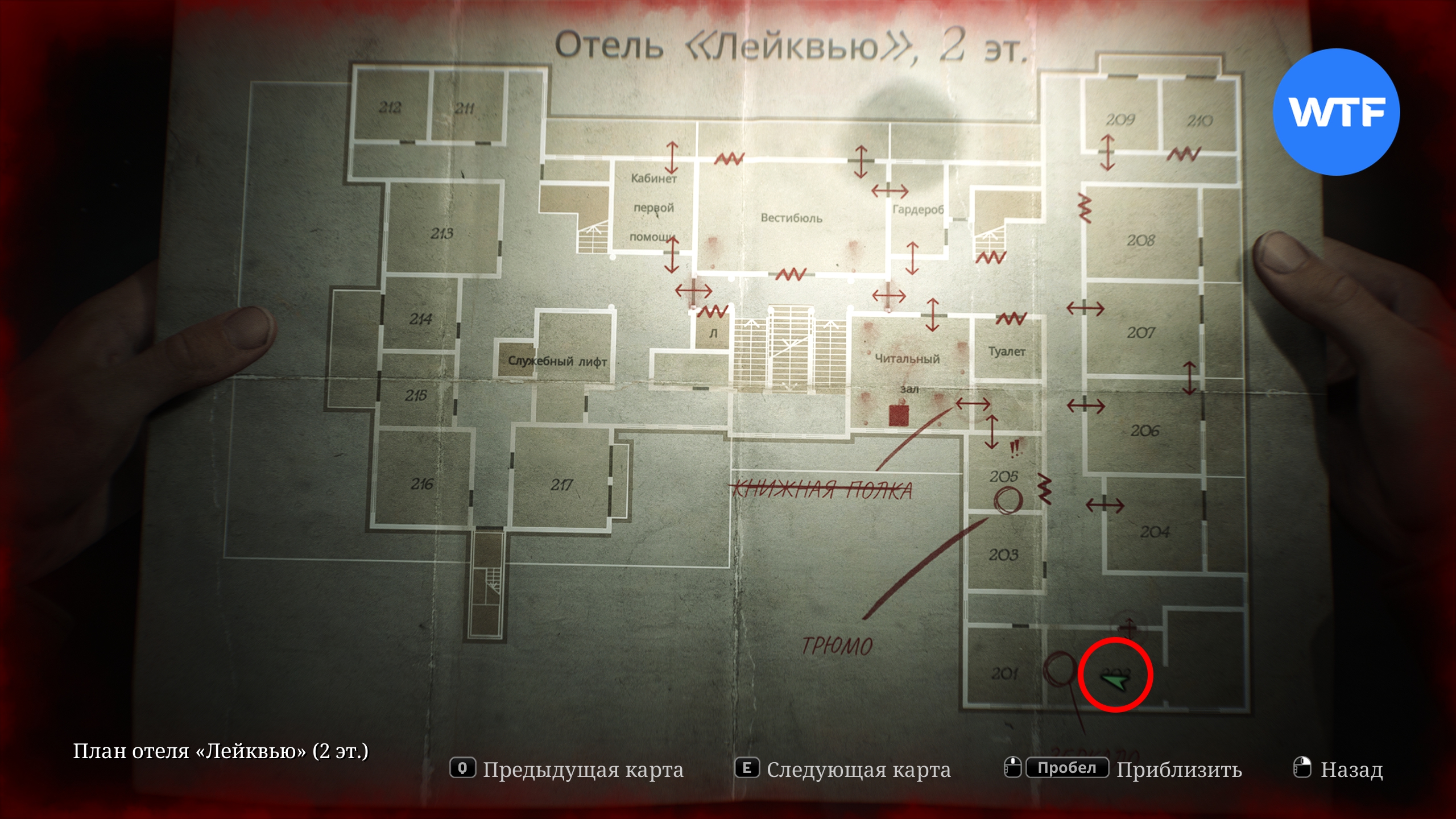 Теперь наконец вы можете отправиться в юго-восточное крыло второго этажа и заглянуть в номер 202, где и найдете загадку с разбитым зеркалом.