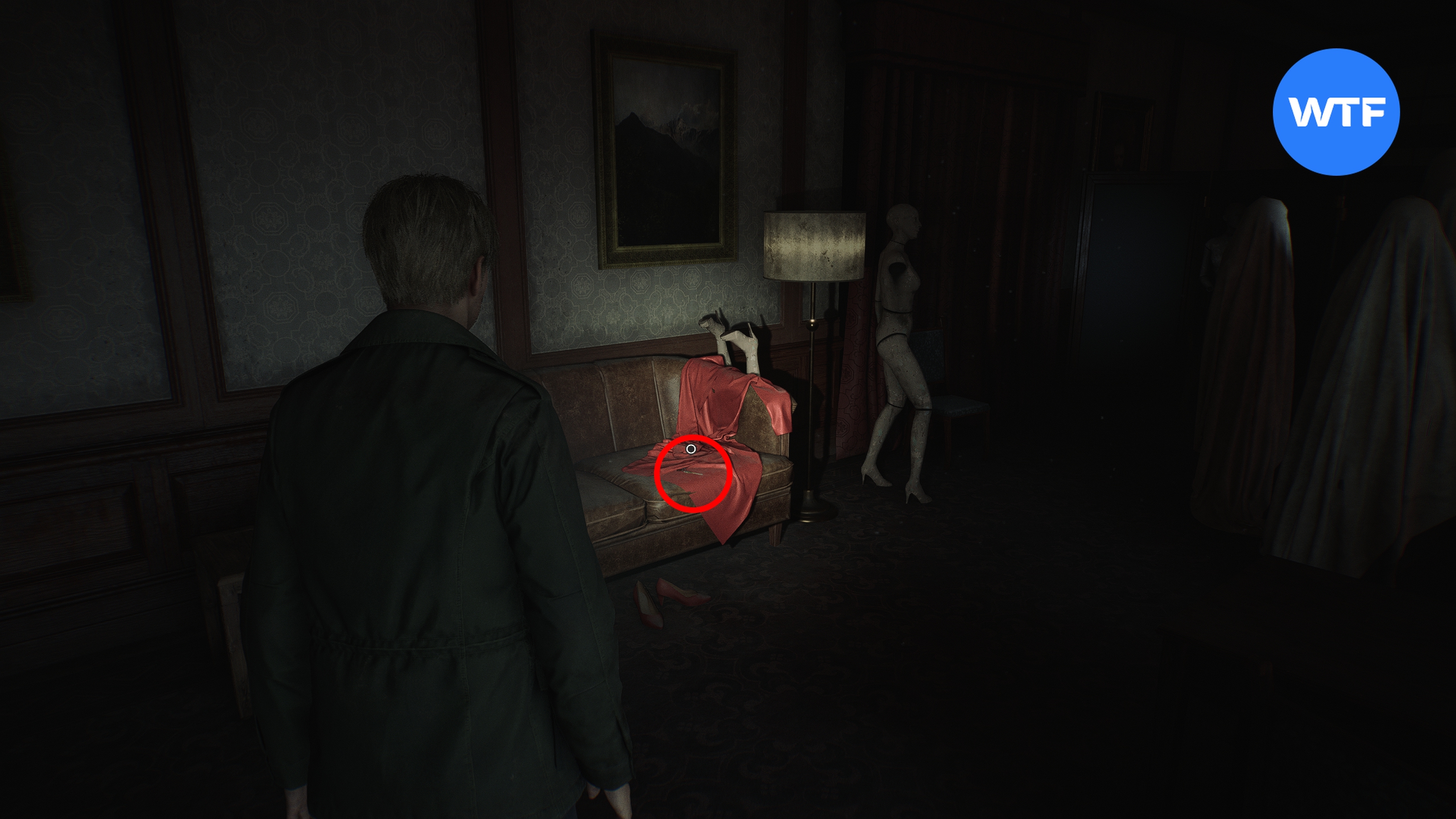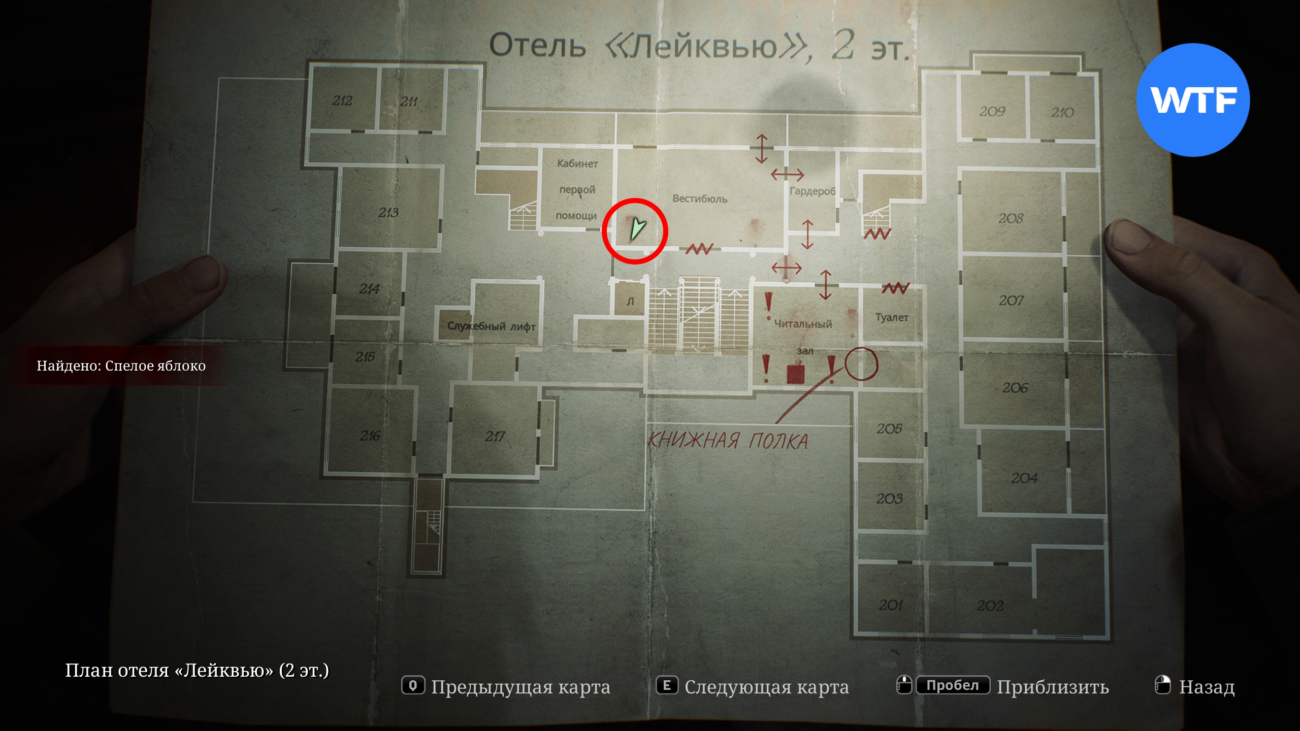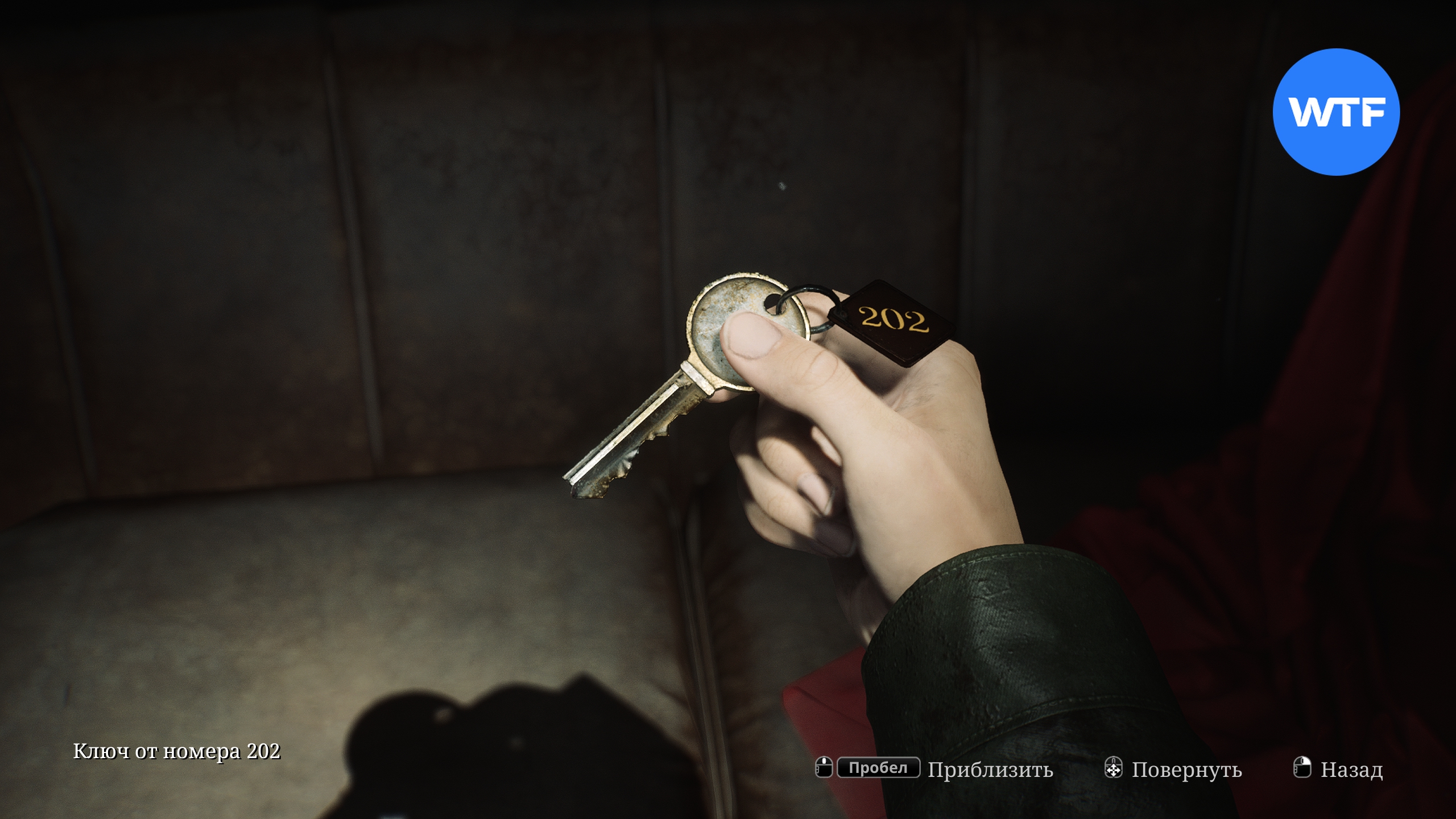 Поднявшись наверх, идите в гардероб и пролезьте через него в вестибюль. Там вам нужно забрать ключ от номера 202, который лежит на диване возле манекена и красного платья.