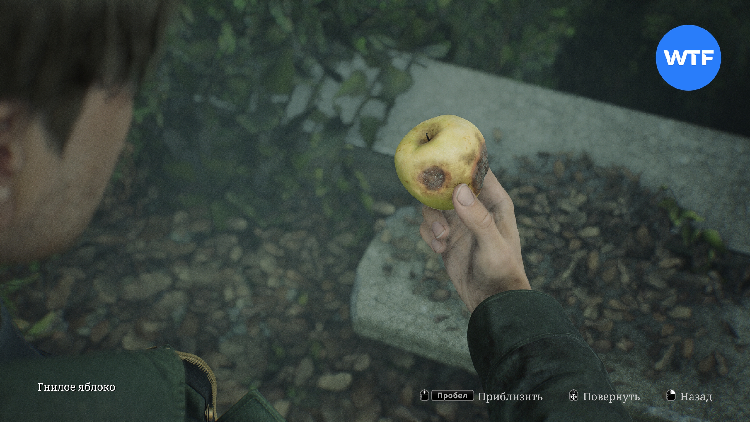 Гнилое яблоко можно найти в юго-восточном углу сада отеля Лейквью. Оно лежит на лавочке под большим деревом.
