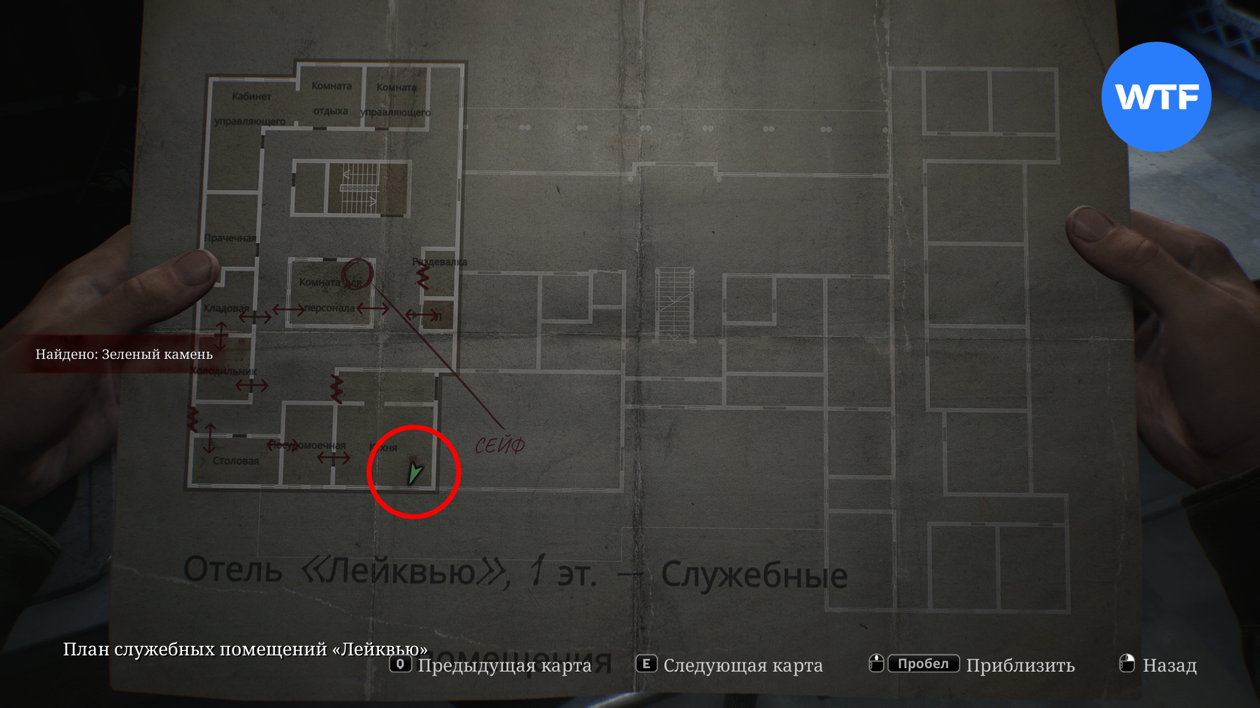 Код от сейфа лежит внутри шкатулки, которую можно найти в кабинете управляющего. Шкатулка заперта и для её открытия вы должны найти три камня, спрятанные в этой части отеля.