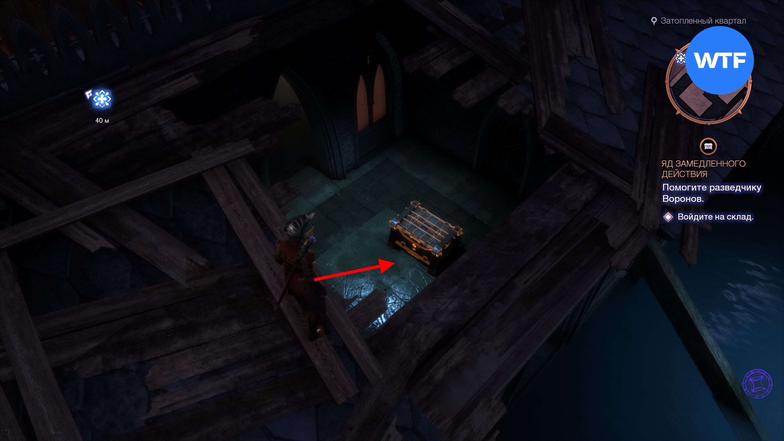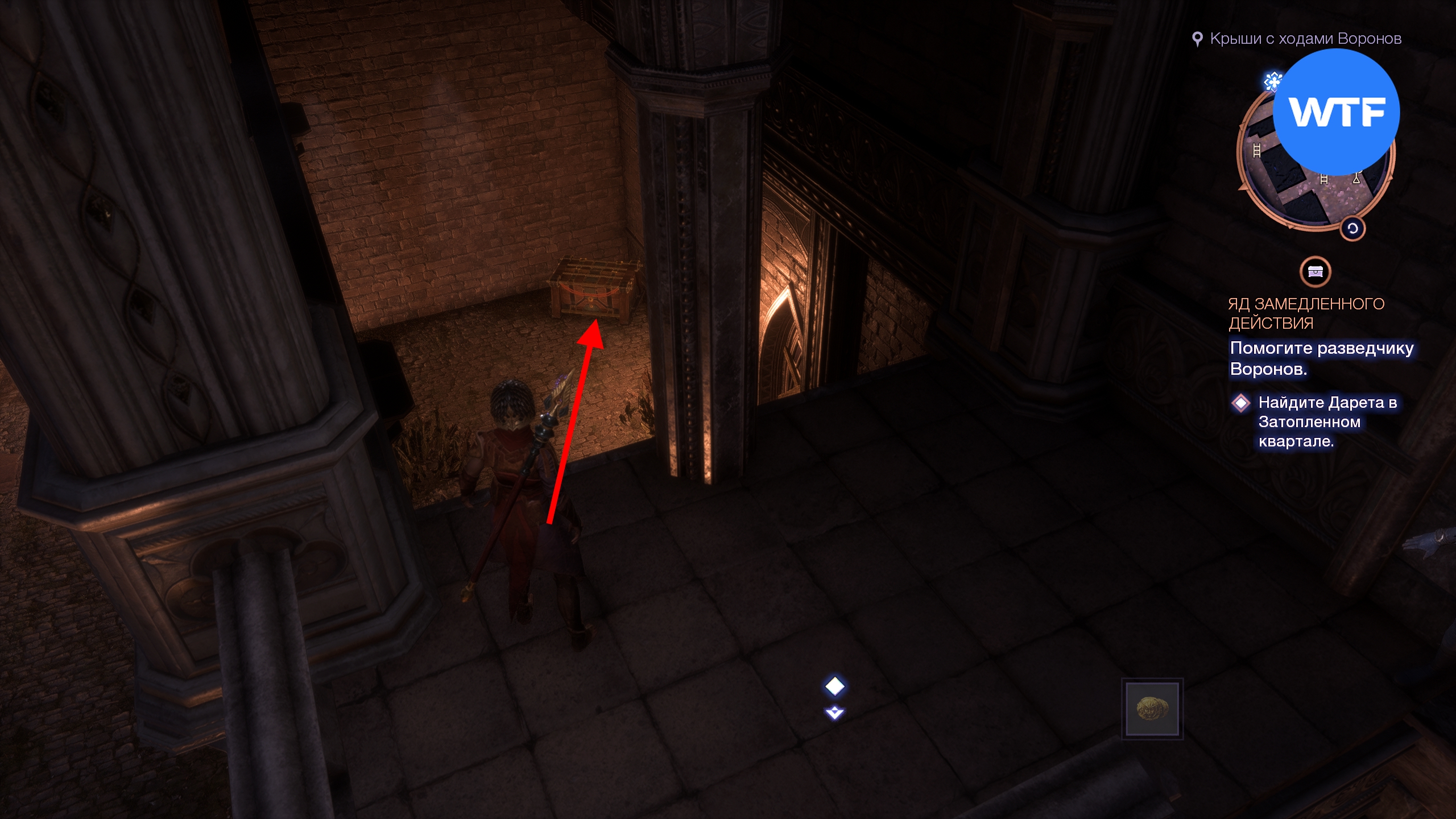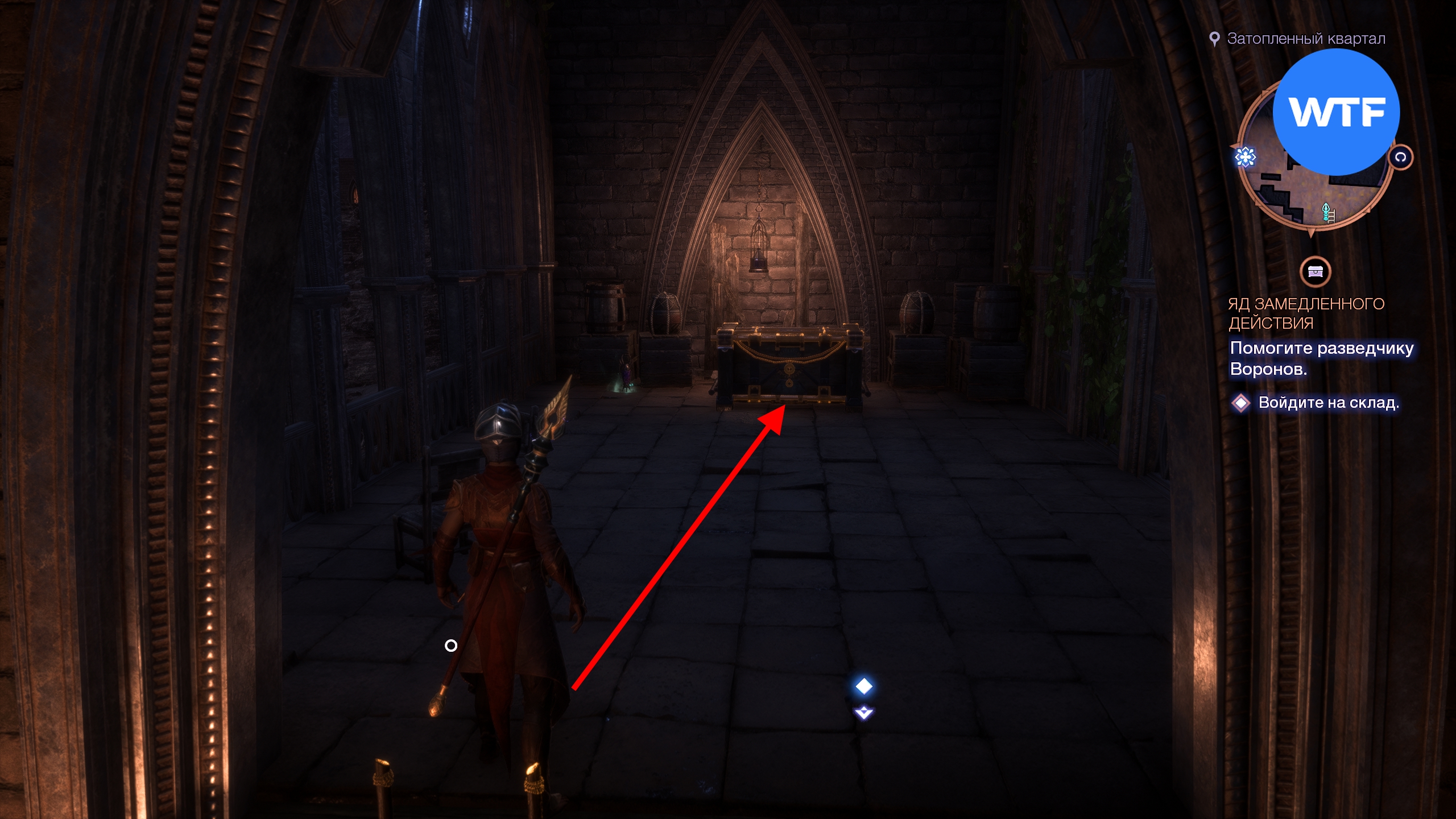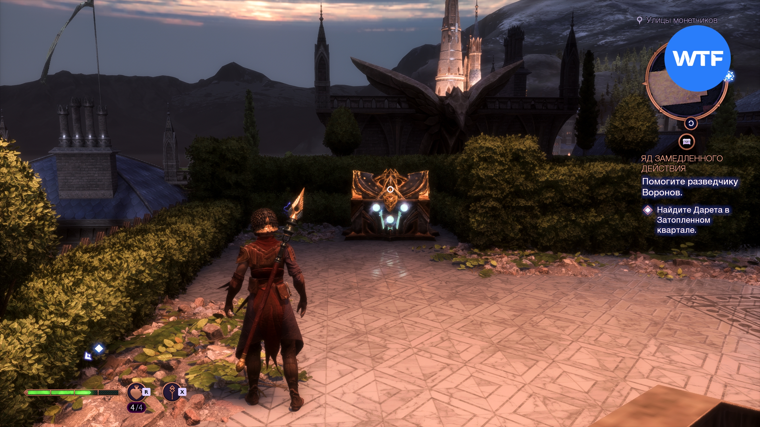Доберитесь до ориентира «Улицы монетчиков», станьте к нему лицом, а затем пройдите через дверь слева. Внутри вы найдете сундук. При попытке его открыть, сработает ловушка — будьте готовы отойти назад.