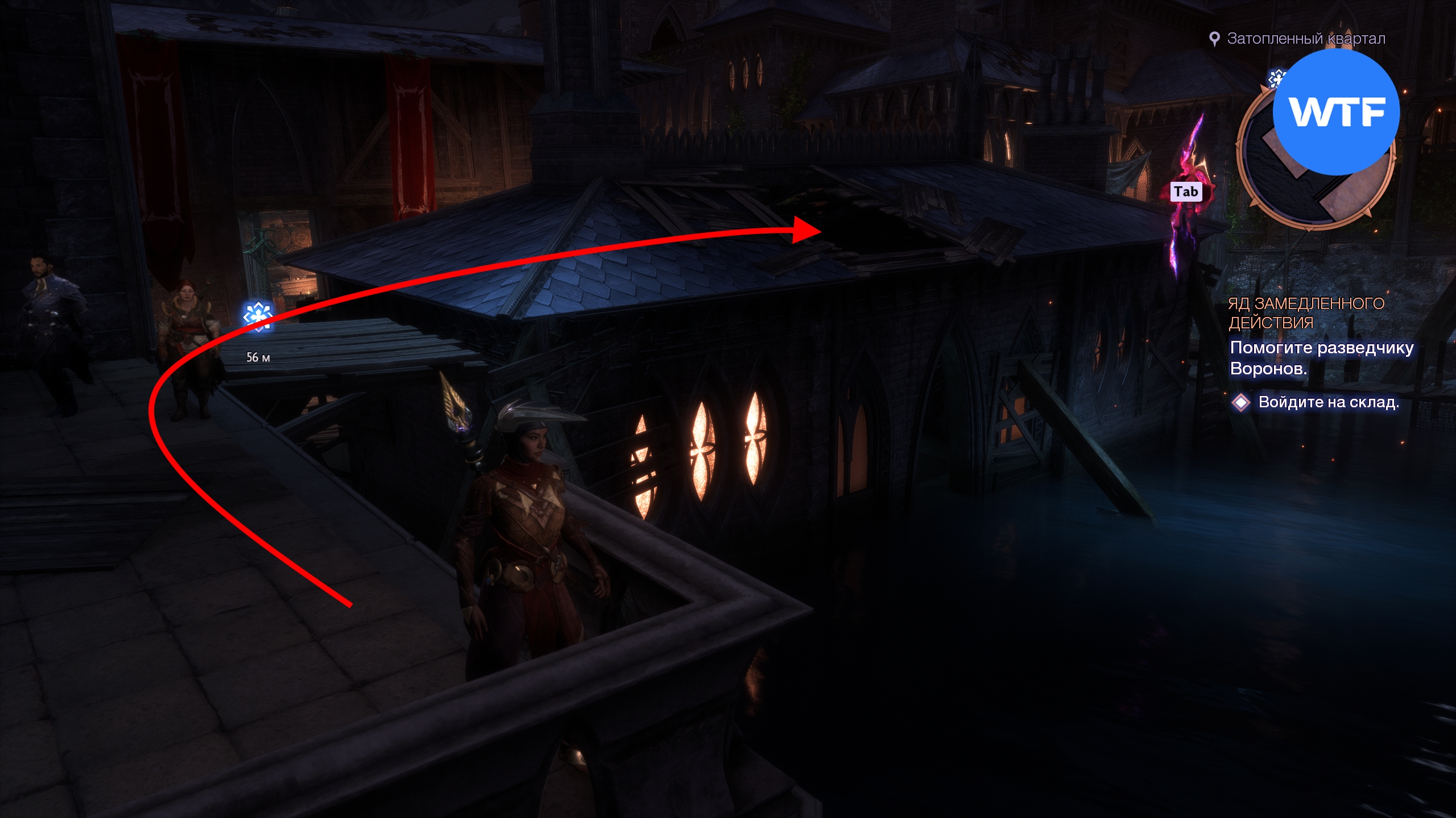 Доберитесь до южного ориентира в Затопленном квартале и поднимитесь наверх по приставной лестнице, расположенной прямо возле него. Затем залезьте в здание через окно слева от вас.