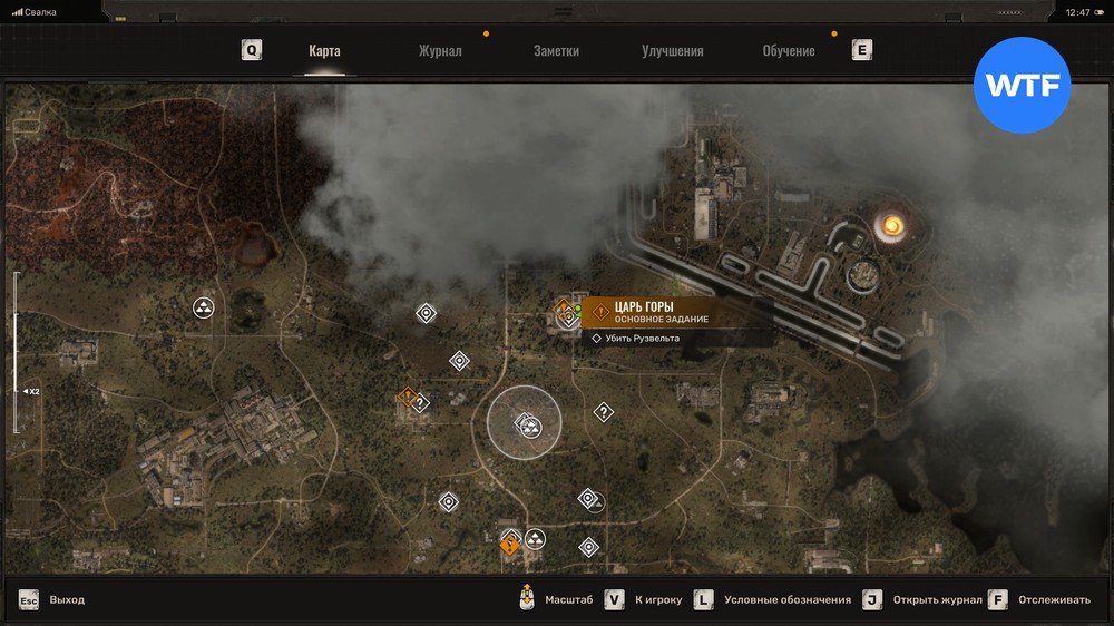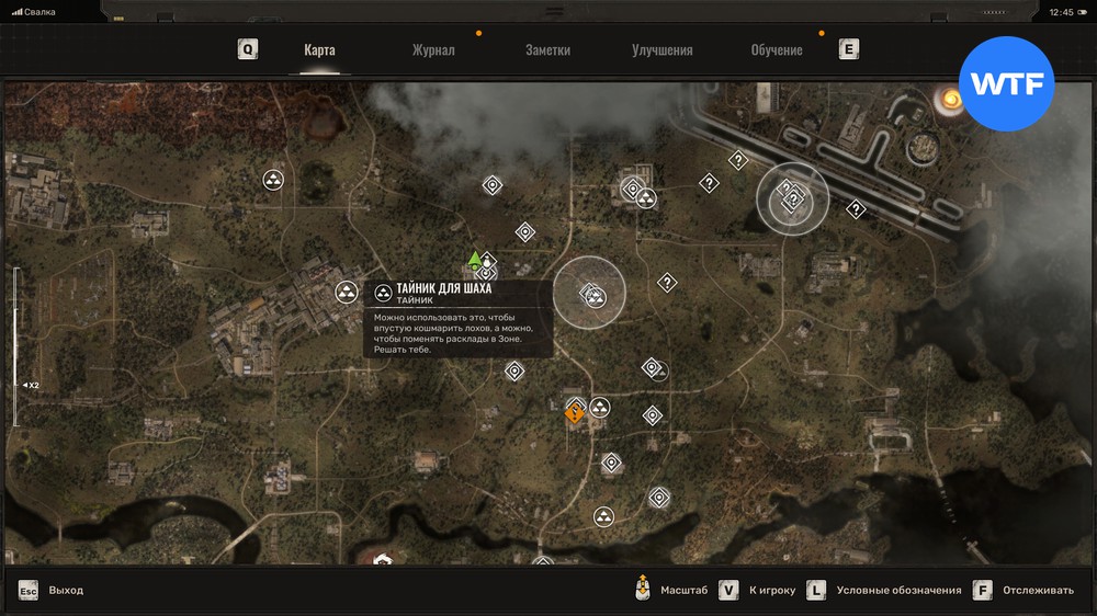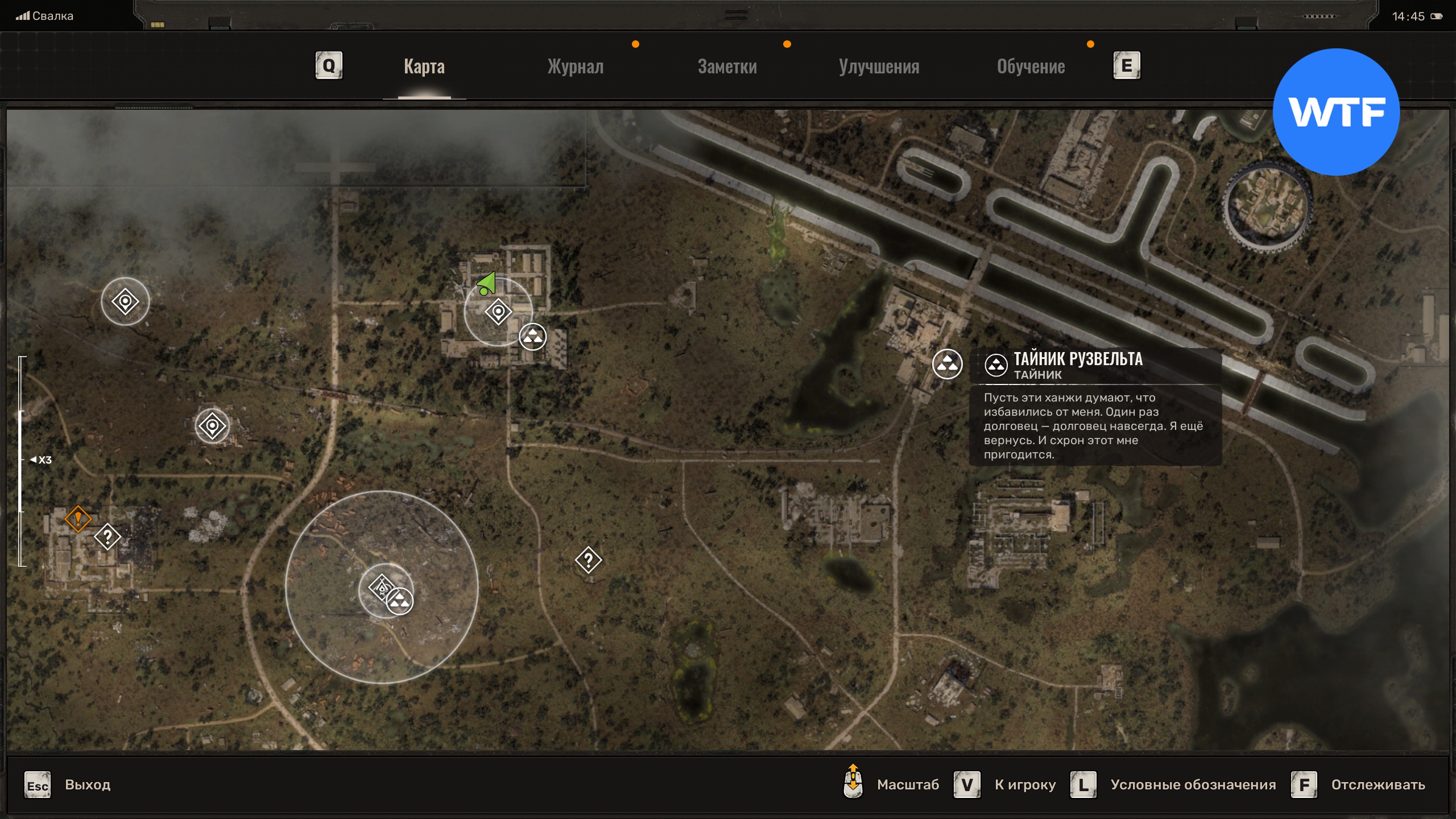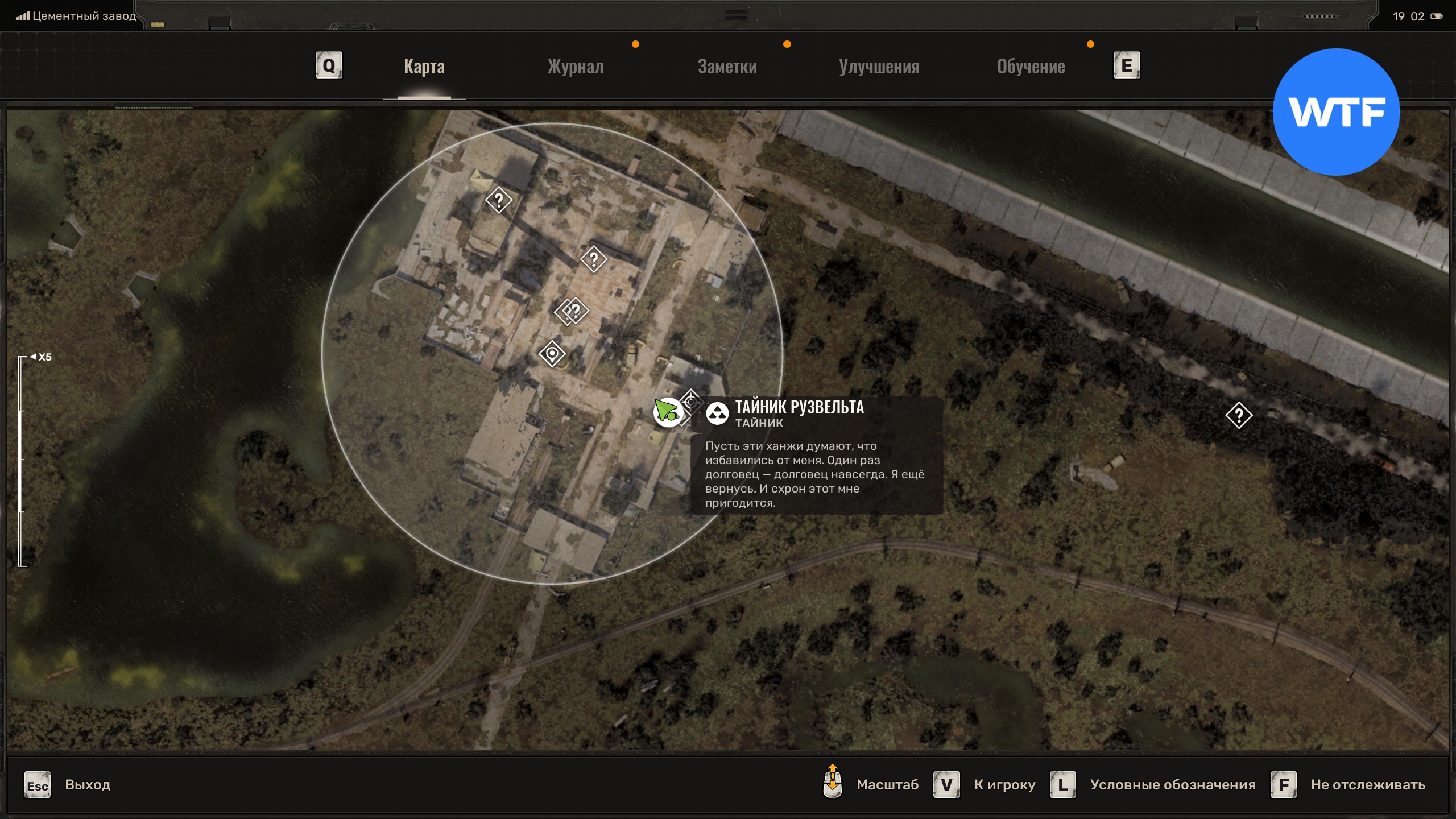 На КПК вы также найдете информацию о тайнике Рузвельта. Он находится на Цементном заводе — это соседний регион к востоку от Свалки.