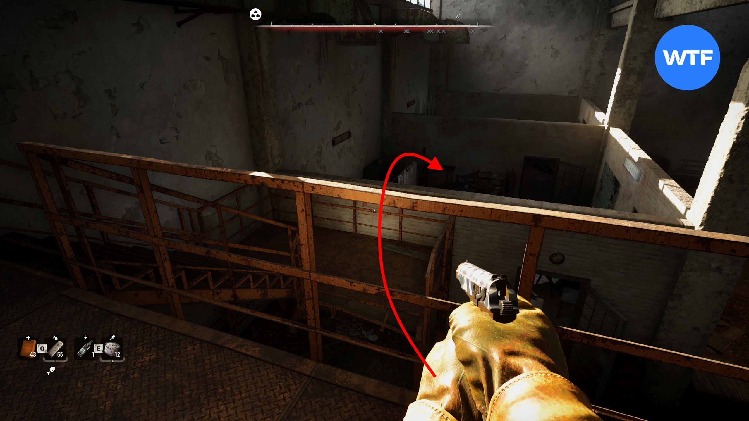 Прибыв на место, вы должны подняться наверх внутри длинной наклонной конструкции с конвейером. Затем присядьте и спрыгните через дыру справа на балкон под вами. Внутри тайника вы найдете: