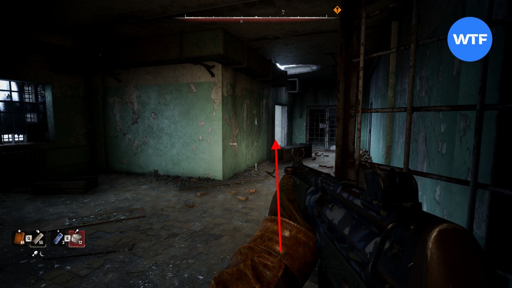 После этого пройдите по коридору немного вперед и сверните в проем справа, а затем в дыру в стене. Так вы окажетесь возле тела Димы Косы, с которого можно забрать старый ключ.