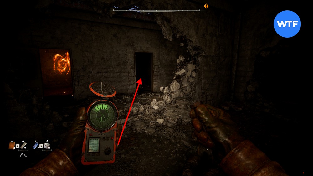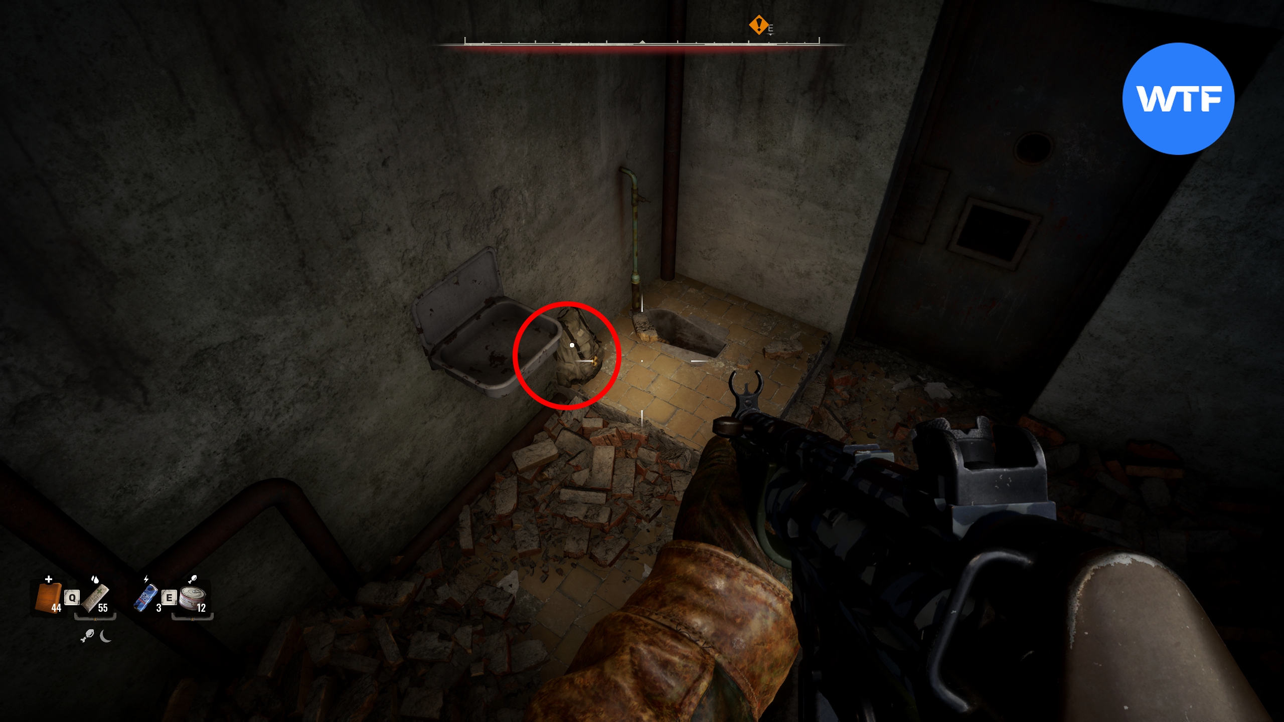 Теперь спуститесь в подвал по каменной лестнице за турникетом и отоприте дверь. Вы попадете в коридор с огромным количеством термических аномалий и полтергейстом. В первую очередь загляните в комнату прямо напротив входа, так как там есть небольшой сейф с припасами.