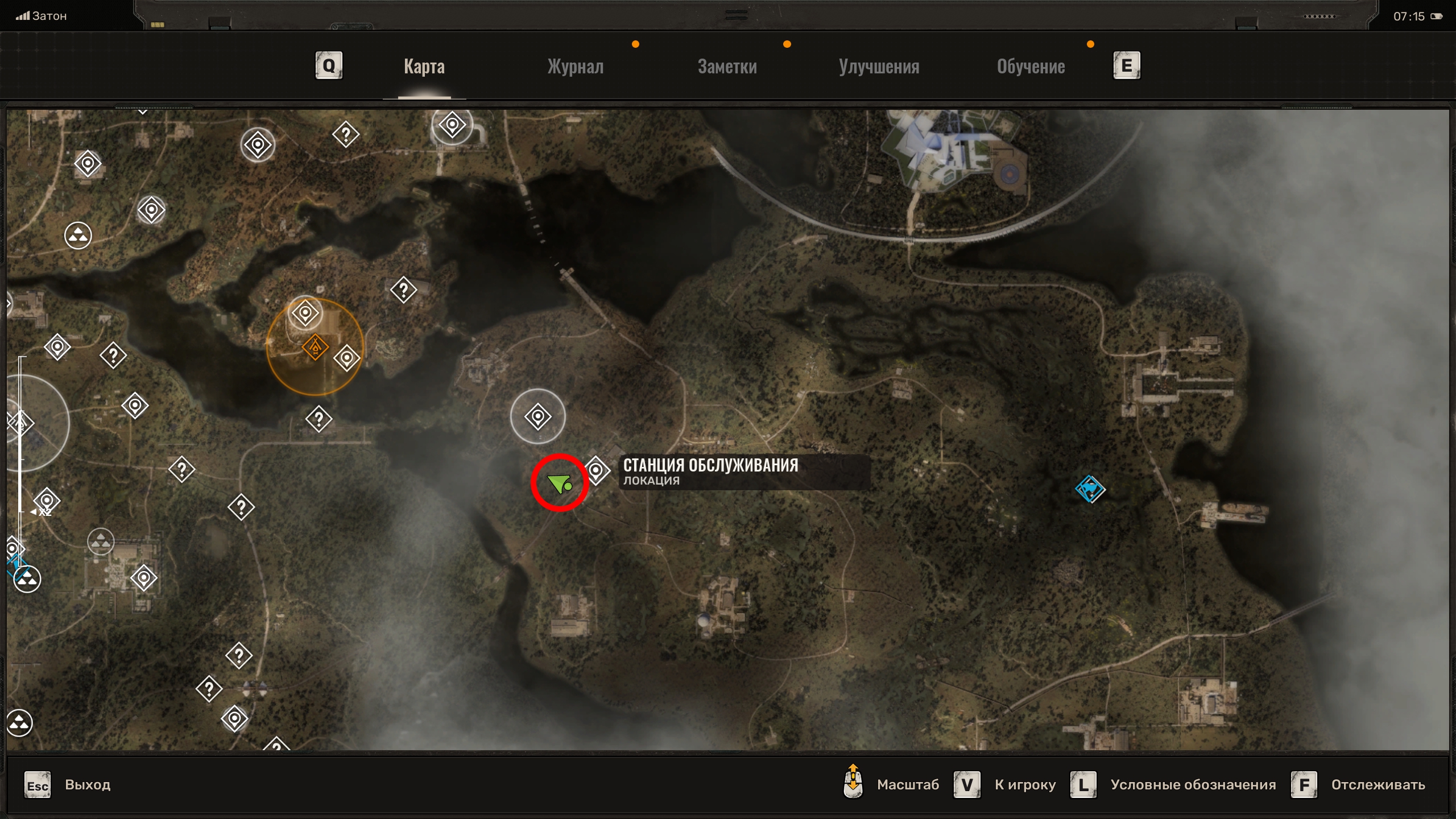 Локация «Станция обслуживания» находится в северо-западной части региона Затон, на границе с Диким островом. Запертую на код дверь можно найти в небольшом двухэтажном здании на юго-западе.