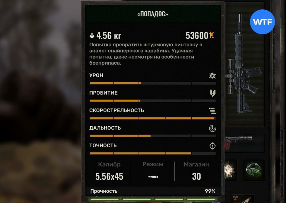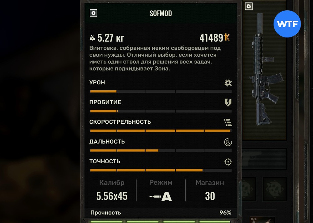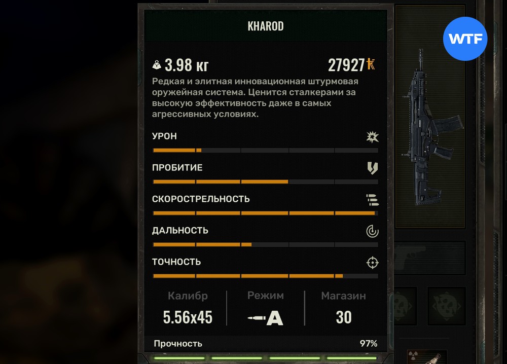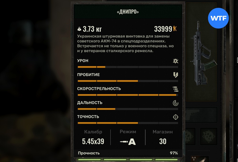 Еще одна хорошая штурмовая винтовка, просто продающаяся в магазине — но дороже, чем GP37. Превратить Днипро в ручной пулемет будет сложновато: расширенный магазин от АК дает только 46 патронов калибра 5.45х39, тоже очень популярного в Зоне.