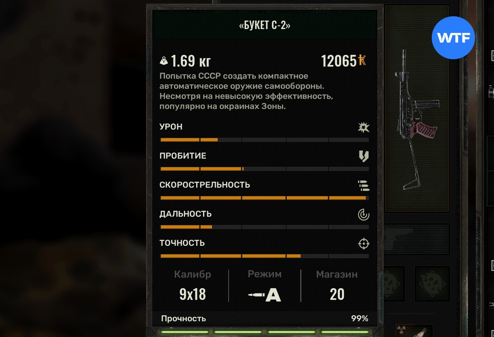 Очень удачный пистолет-пулемет начального этапа игры, использующий пистолетный патрон 9х18 — как у АПБС и пистолета Скифа. Букет С-2 хорошо показывает себя при бое в замкнутом пространстве или на средней дистанции.