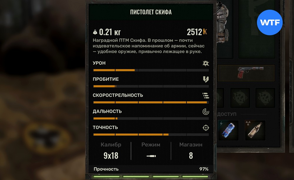 Кроме того, на пистолет Скифа можно поставить сразу две модификации: глушитель и увеличенный магазин (подходит версия от ПТМ), добавляющий еще 5 патронов.