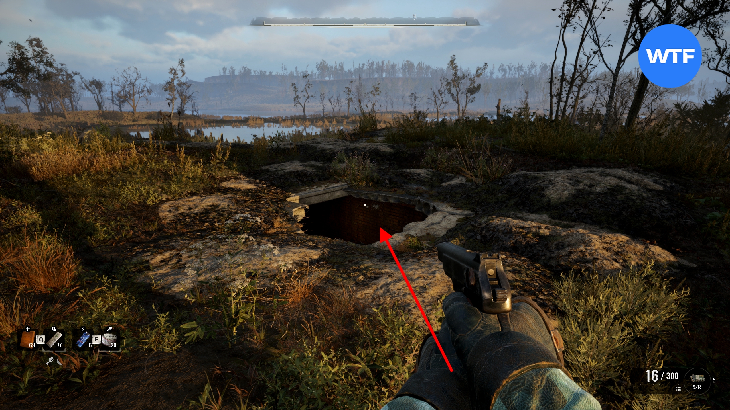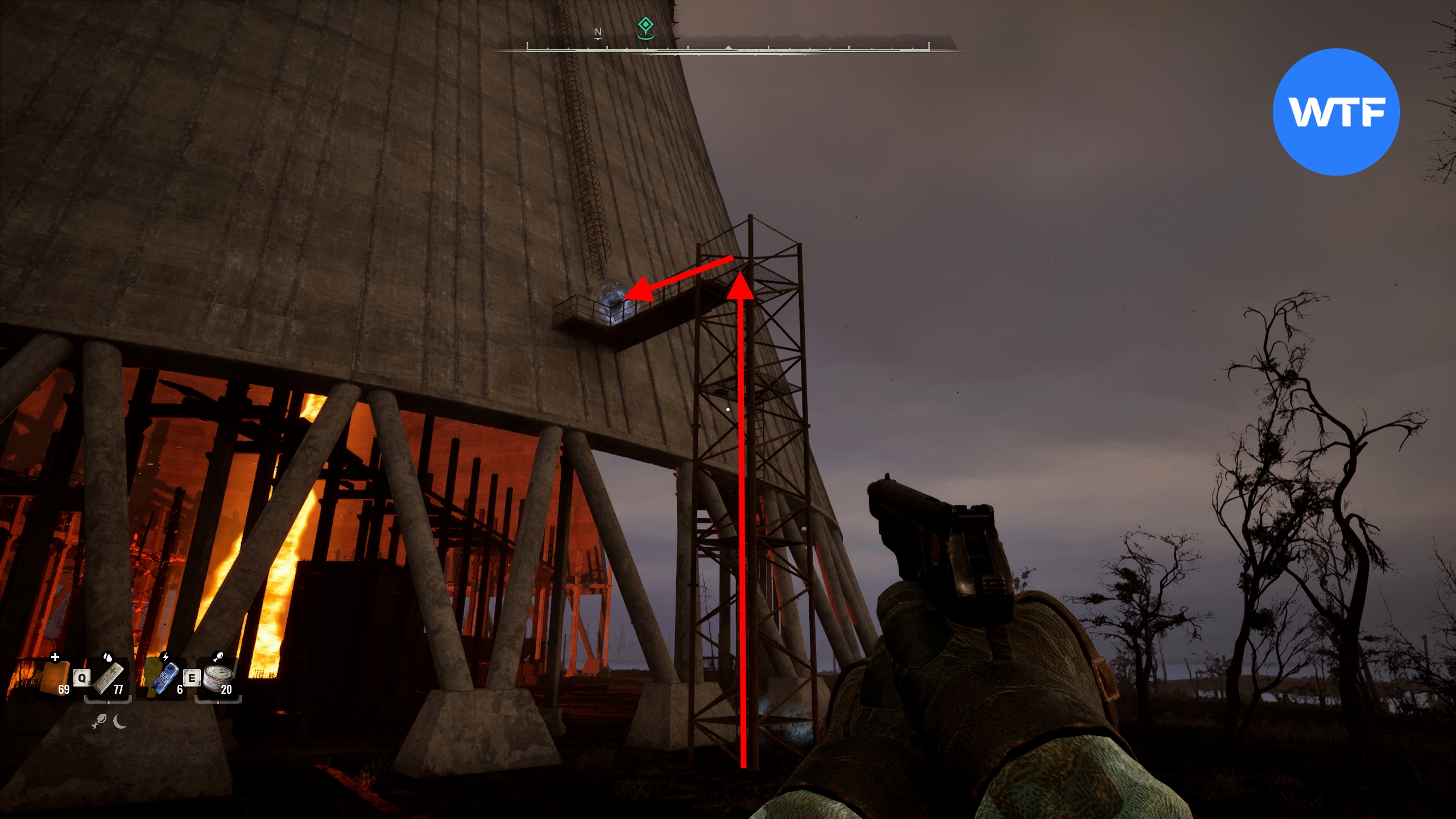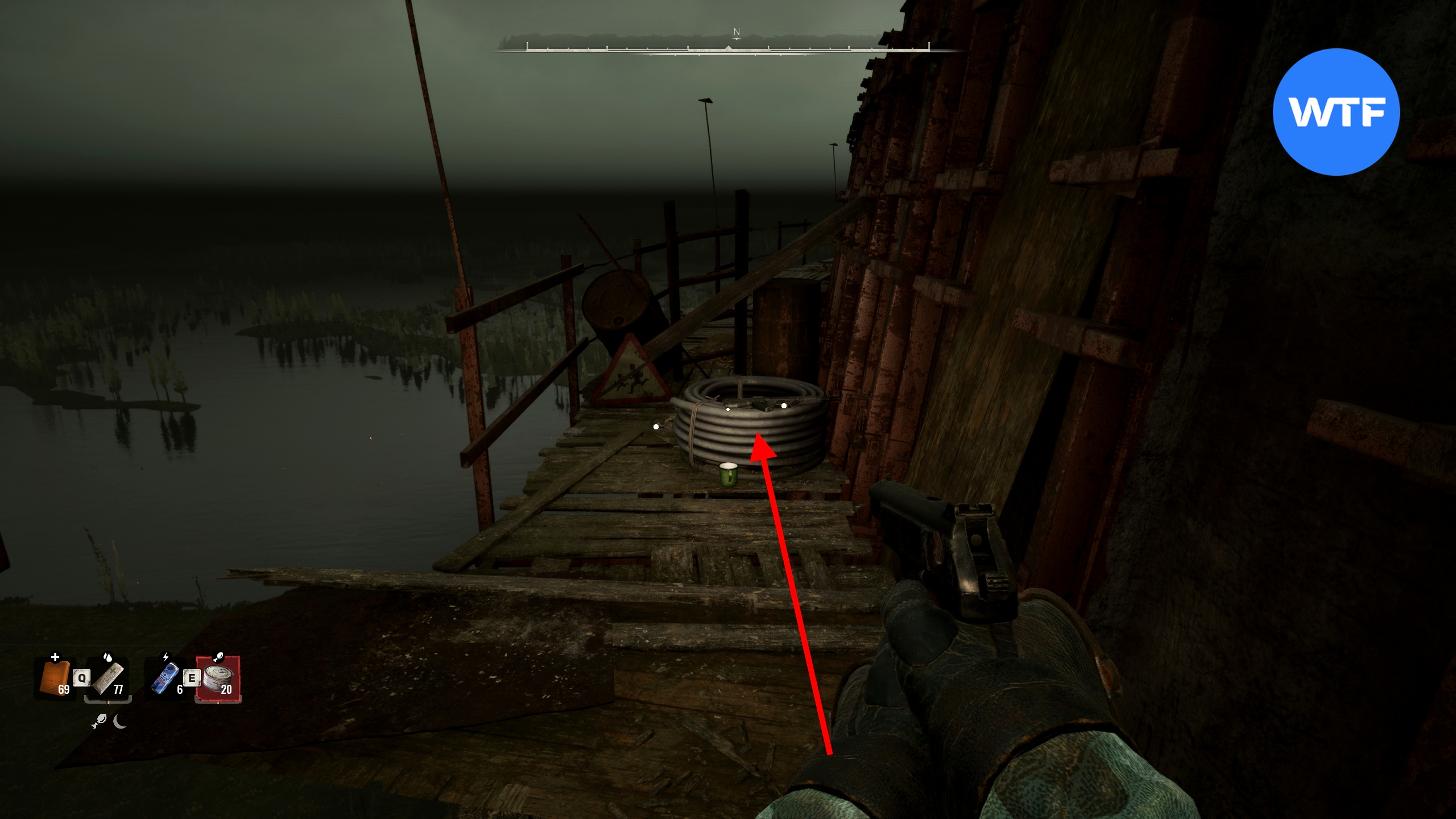 Воспользуйтесь аномалией, чтобы перенестись выше, а затем идите по деревянному помосту налево, пока в итоге не наткнетесь на винтовку.