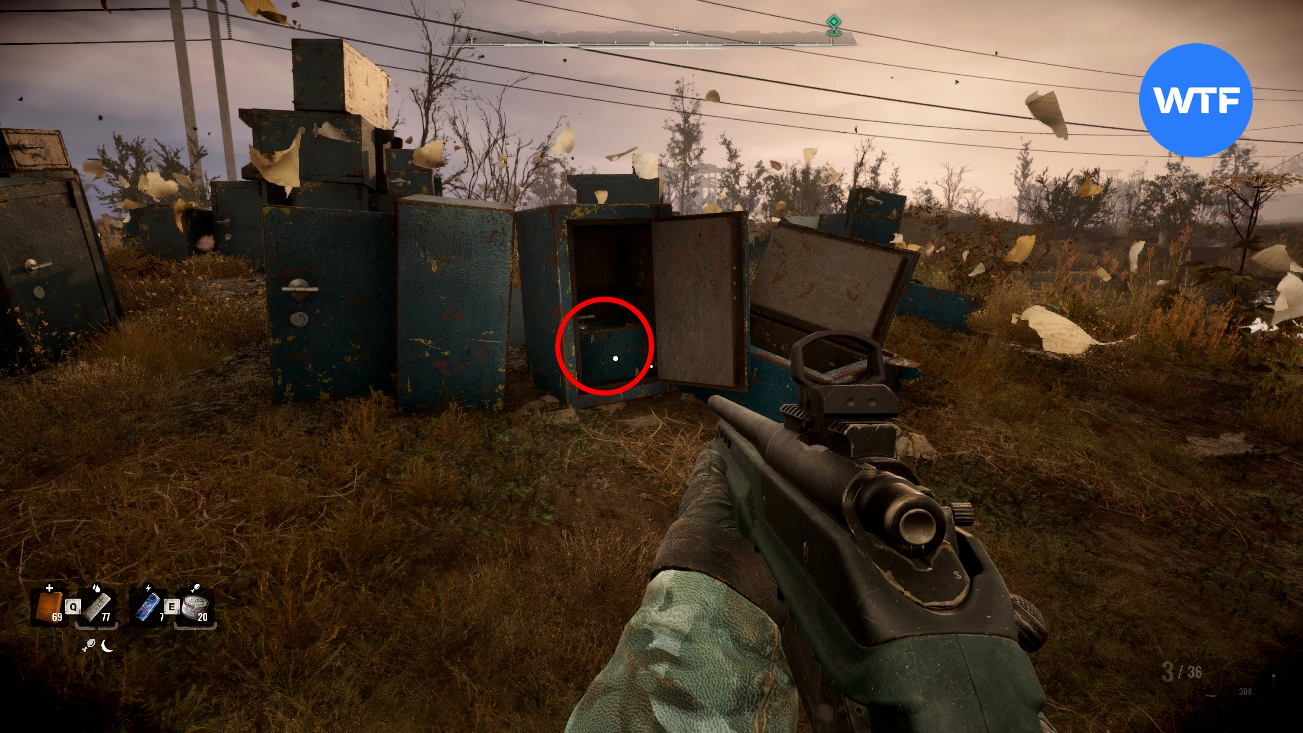 Также вы можете отправиться в западную часть региона Цементный завод и гарантированно забрать эту пушку из странной области с кучей сейфов. Сначала вам нужно найти сейф, внутри которого лежит другой сейф с ключом.