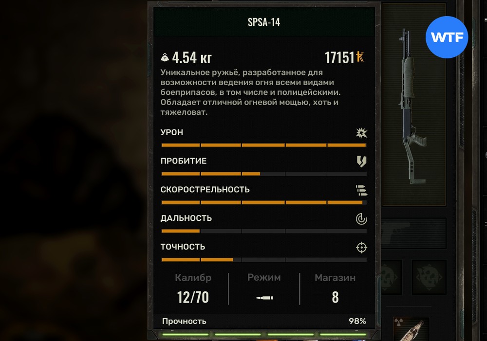 Лучший неуникальный дробовик в игре, его основные преимущества — увеличенная бронепробиваемость и наличие сразу нескольких модификаций, увеличивающих размер магазина вплоть до 20 патронов от базовых 8 зарядов.