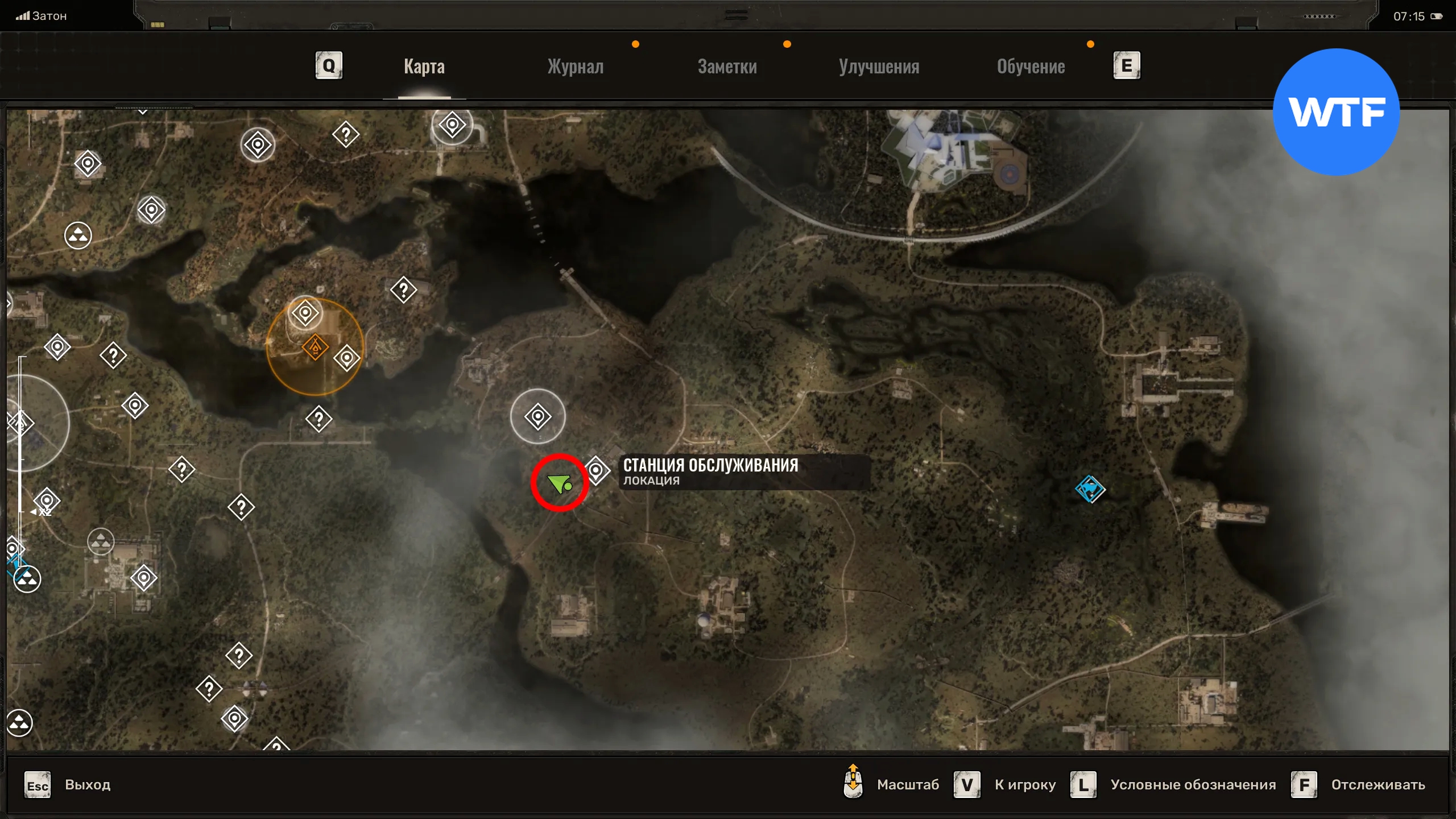 Станцию обслуживания можно найти в северо-западной части региона Затон, на границе с Диким островом. Чтобы открыть дверь в небольшом двухэтажном здании на юго-западе, введите код 2468.
