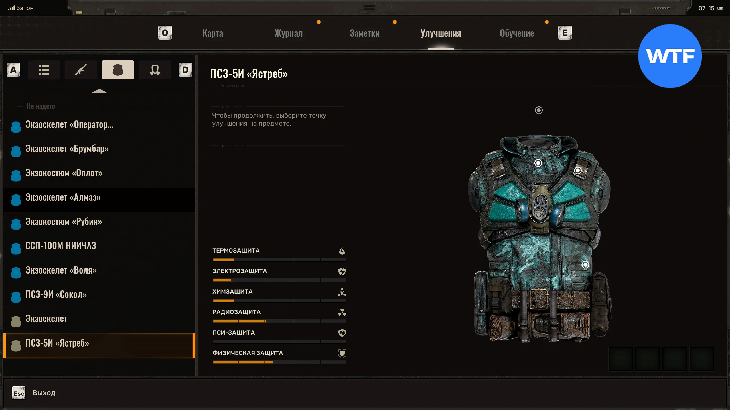Внутри тайника вы найдете уникальный костюм ПСЗ-5И «Ястреб», а также другие полезные припасы.