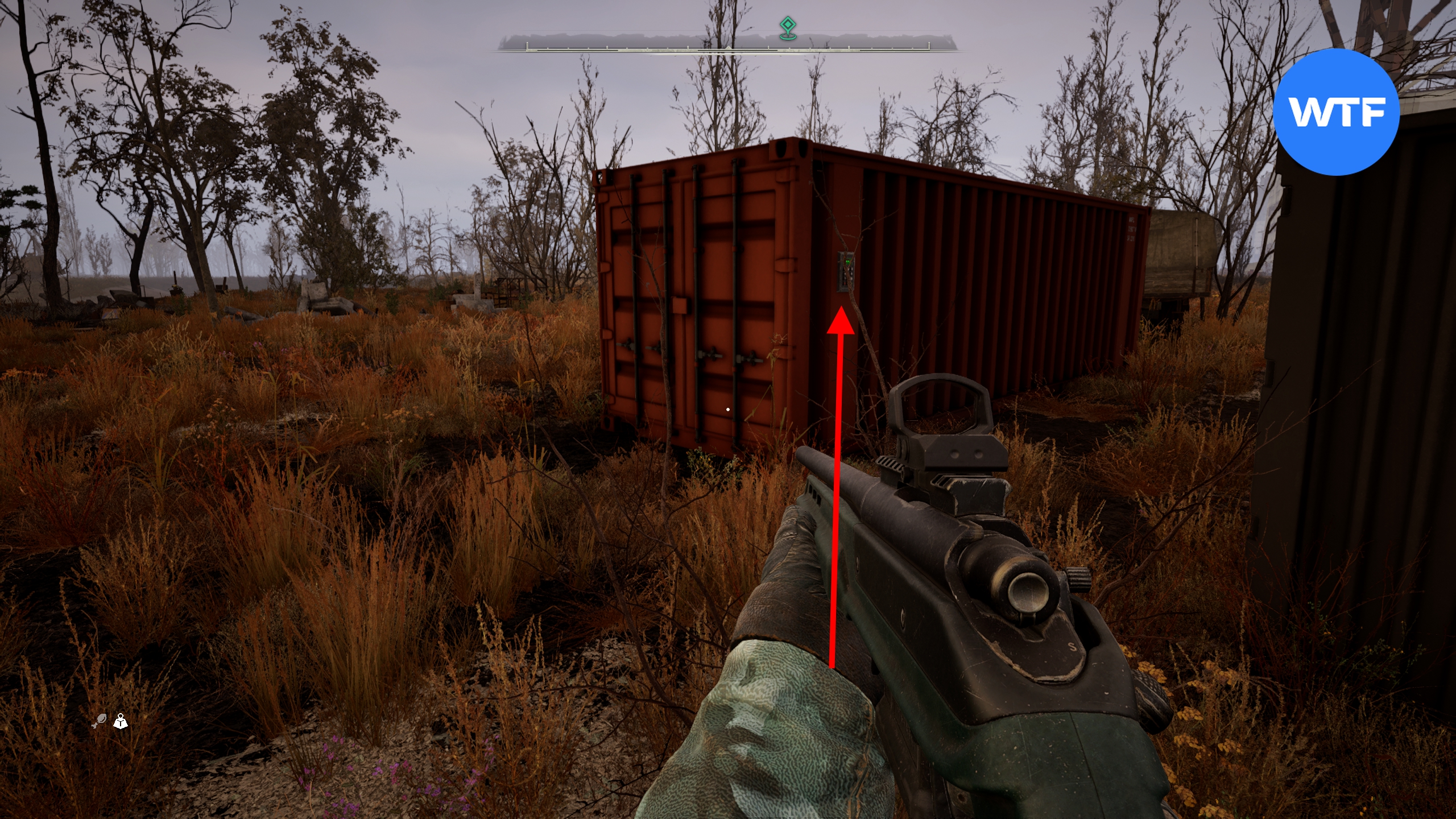 К западу от аномальной области «Огненный смерч» в регионе Градирни есть небольшая безымянная область с несколькими контейнерами, один из которых заперт на кодовый замок.