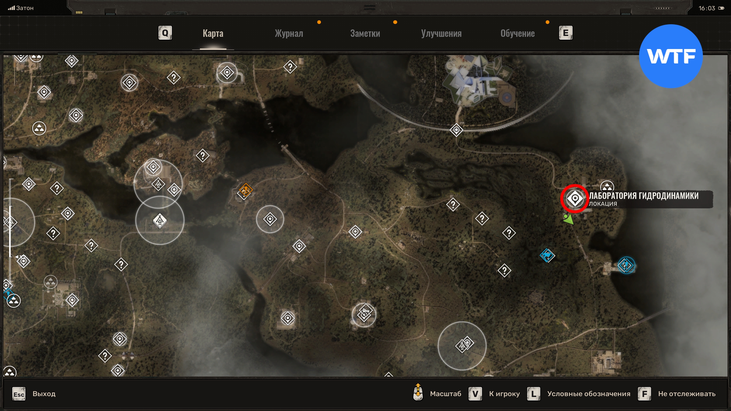Лаборатория гидродинамики находится в восточной части региона Затон. Чтобы попасть внутрь здания в юго-западном углу, нужно ввести код 4824. Вы найдете его, если убьете Контролера на втором этаже здания к северо-востоку и заберете с его тела электронный ошейник.
