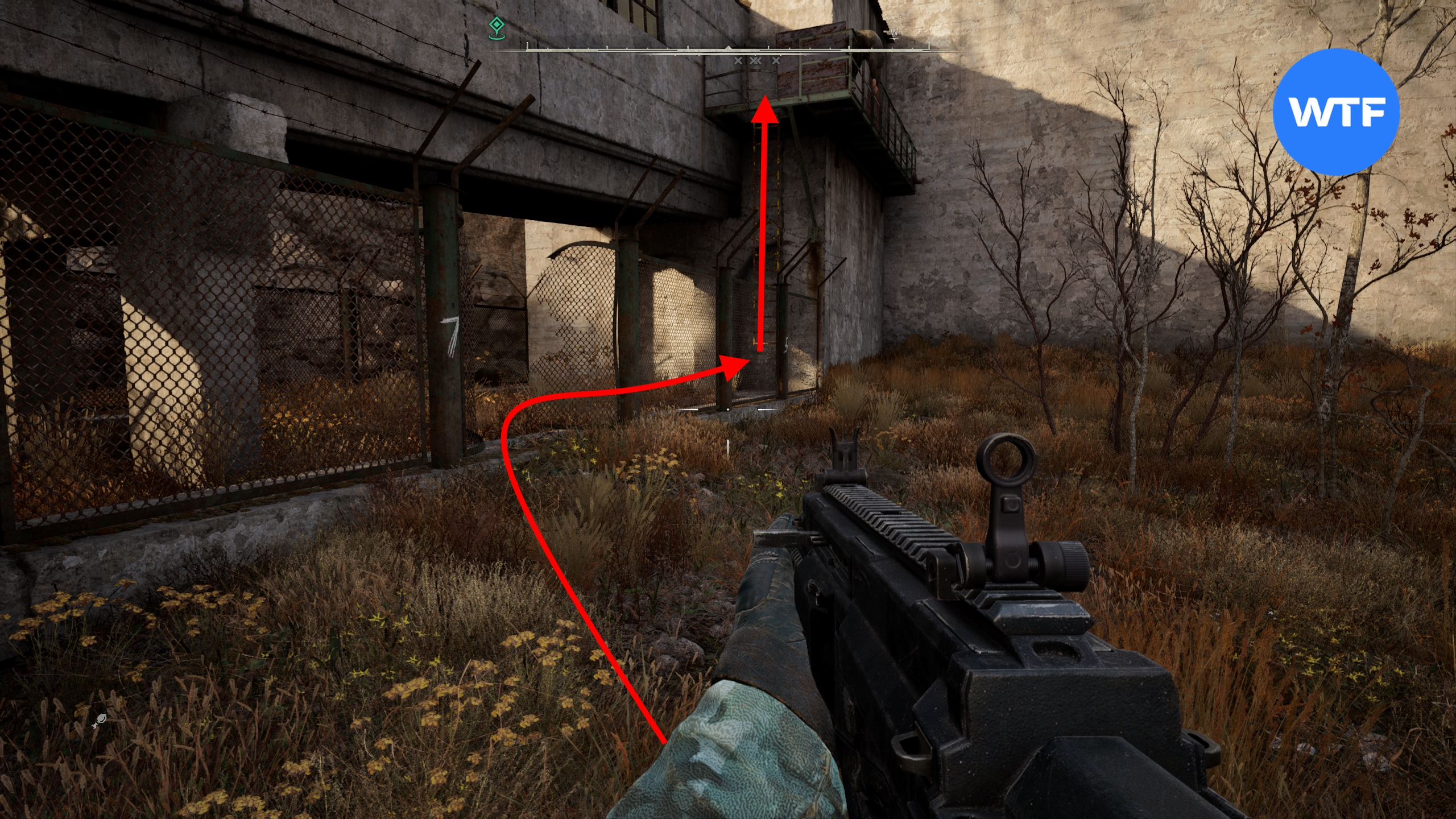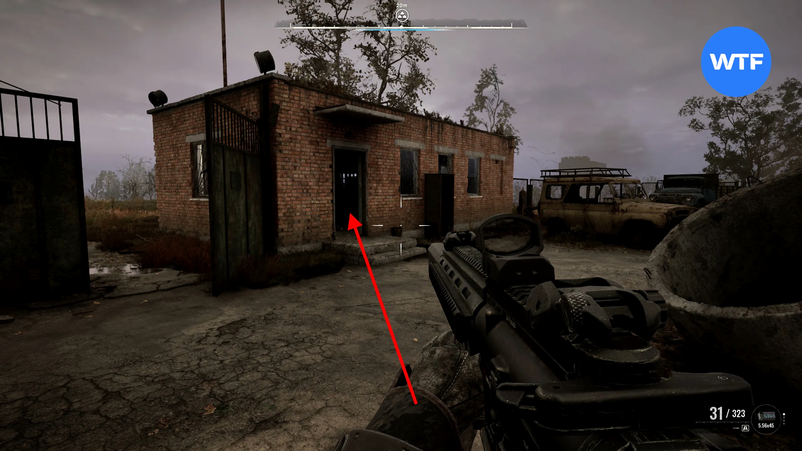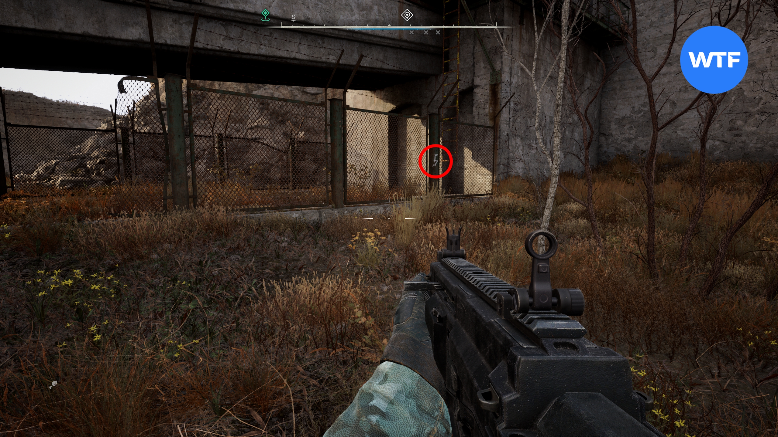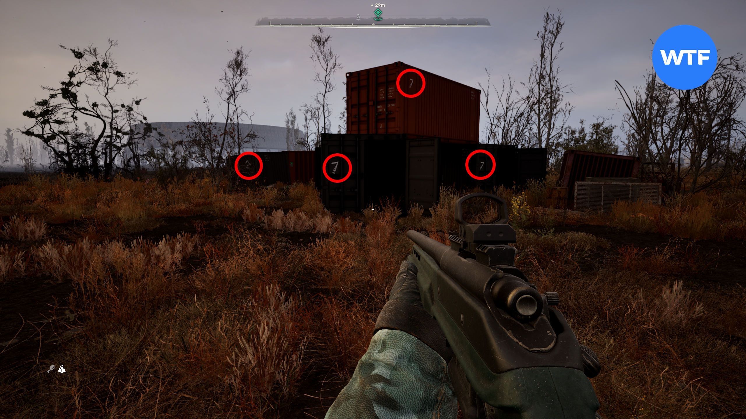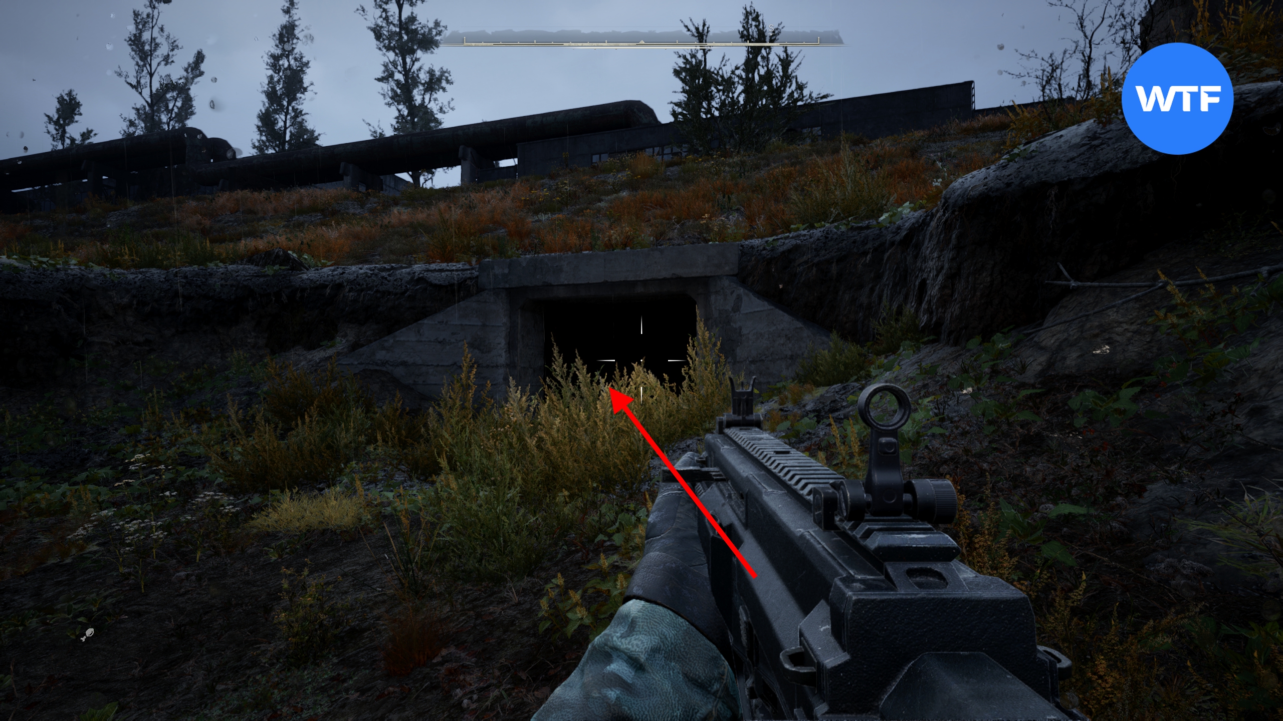 Введите код 1287975, чтобы открыть замок. Цифры кода написаны на столбах забора, идущего вокруг тоннеля. Внутри вы найдете штурмовую винтовку AR416 и множество разных припасов.