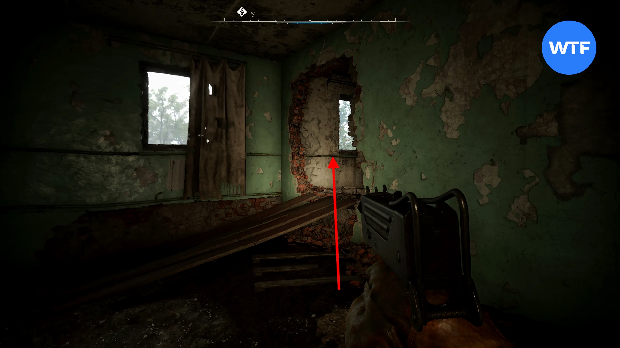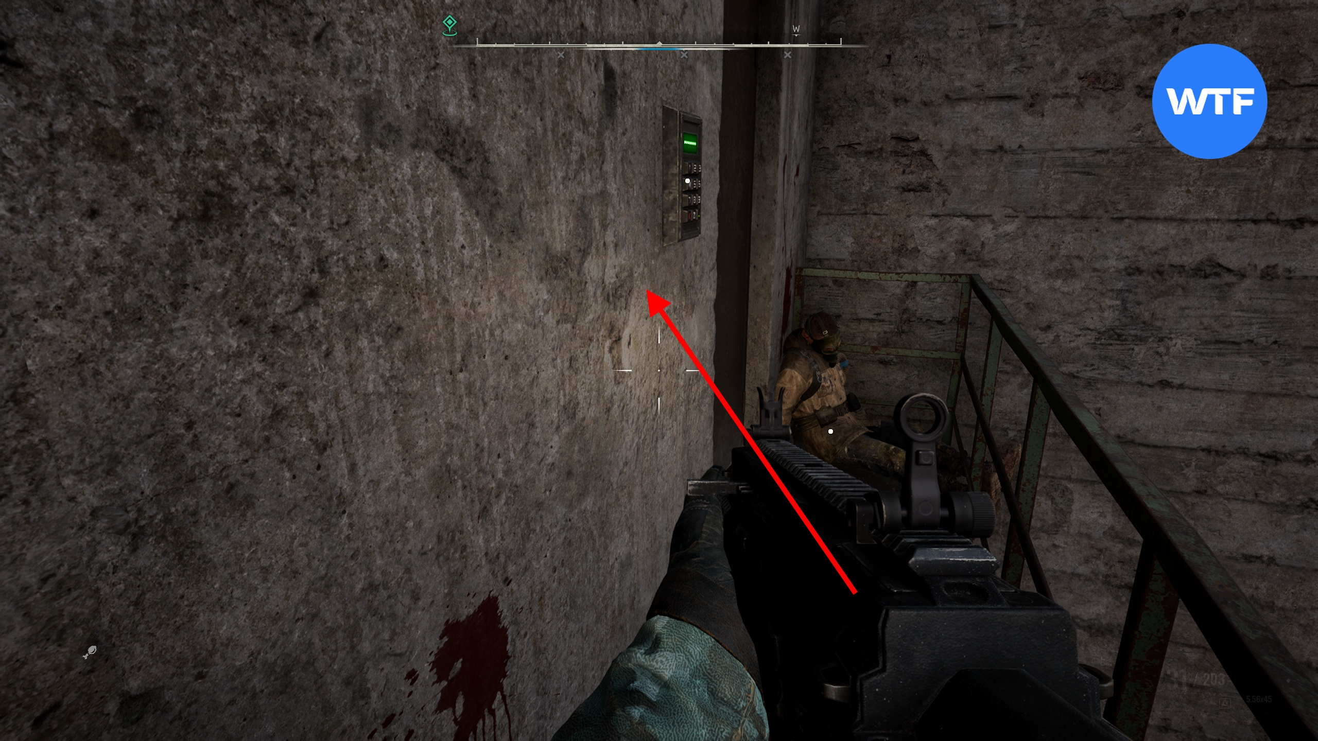 Введите код 2110, чтобы открыть люк. Внизу вы найдете увеличенный магазин для Mark 1 и другие припасы. Сам код написан на деревянном ящике рядом. Вы должны выстрелить в маленький деревянный ящик, чтобы увидеть вторую цифру.