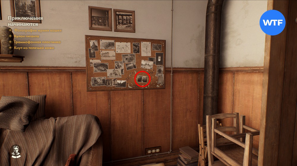 Следующую заметку вы должны найти в рамках сюжетной задачи «Приключения начинаются» во время сбора чемодана. Фотография мумии кошки висит на пробковой доске, в правом нижнем углу.