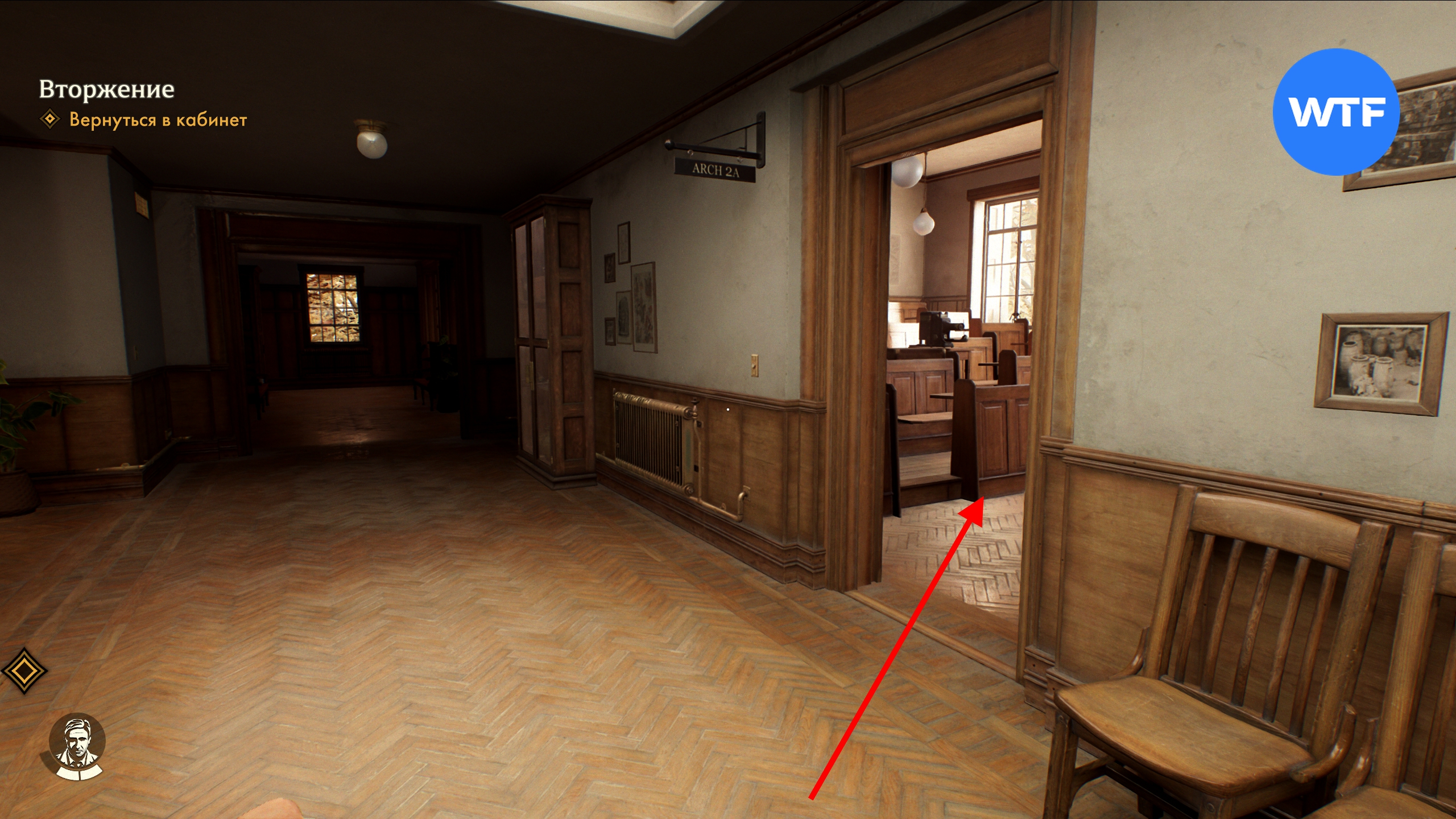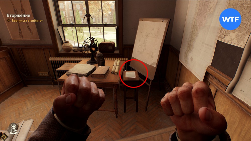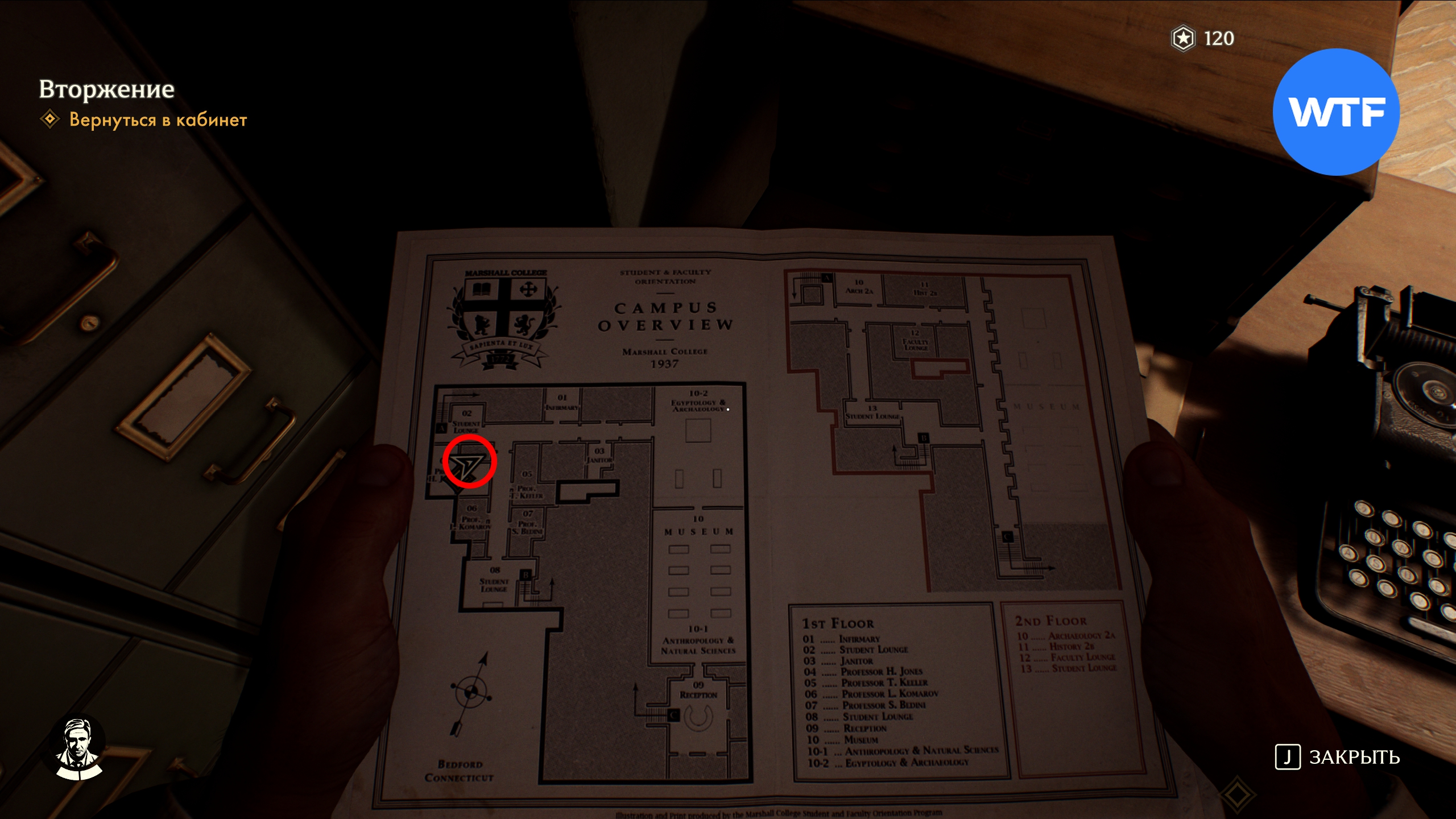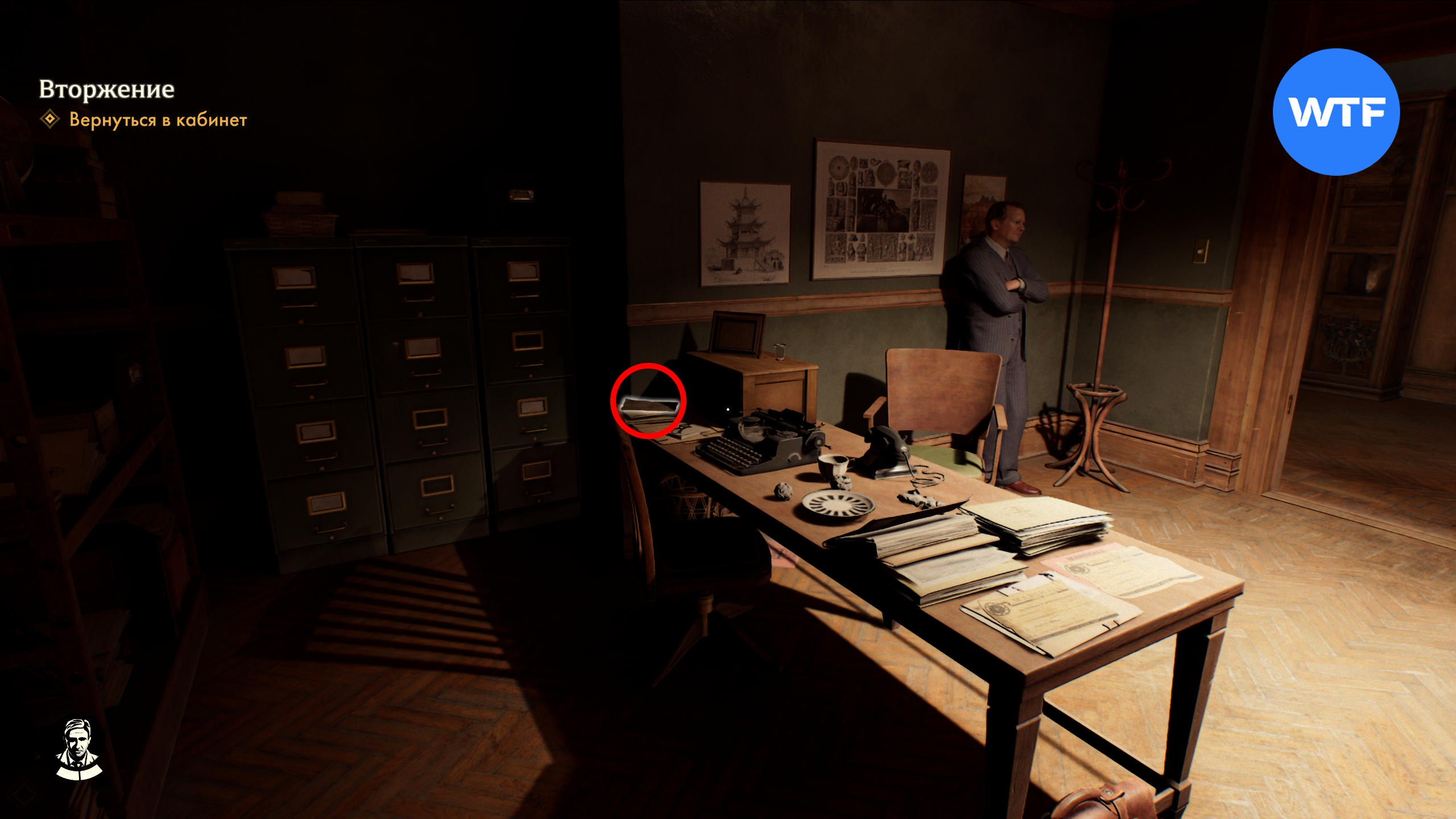 Теперь идите в свой кабинет и заберите Карту храма, лежащую на столе возле печатной машинки.