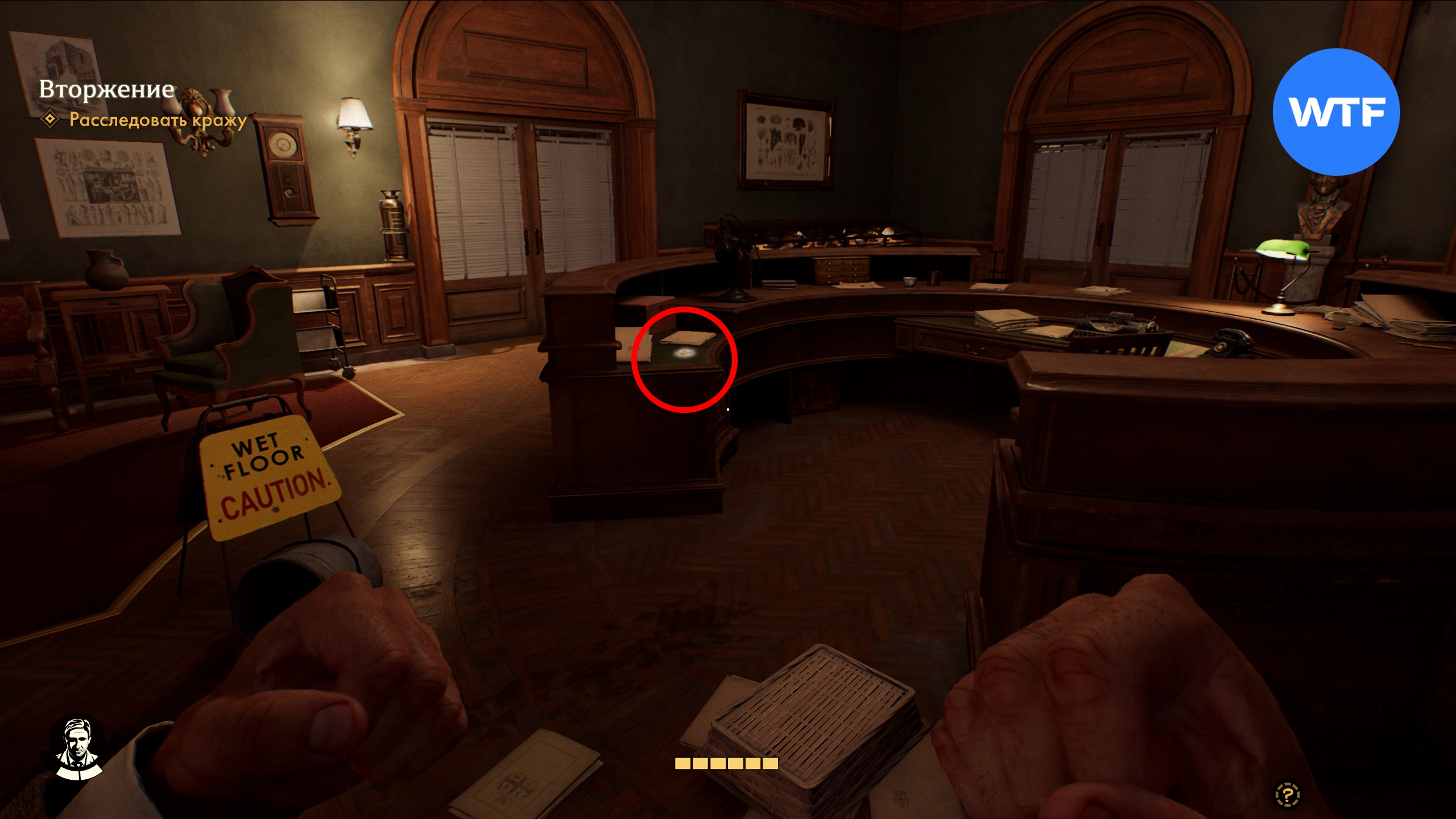 Первую заметку в этом регионе можно забрать сразу после вашей встречи с незнакомцем по сюжету. Вернитесь в зону ресепшн и заберите карточку, лежащую на круглой стойке.