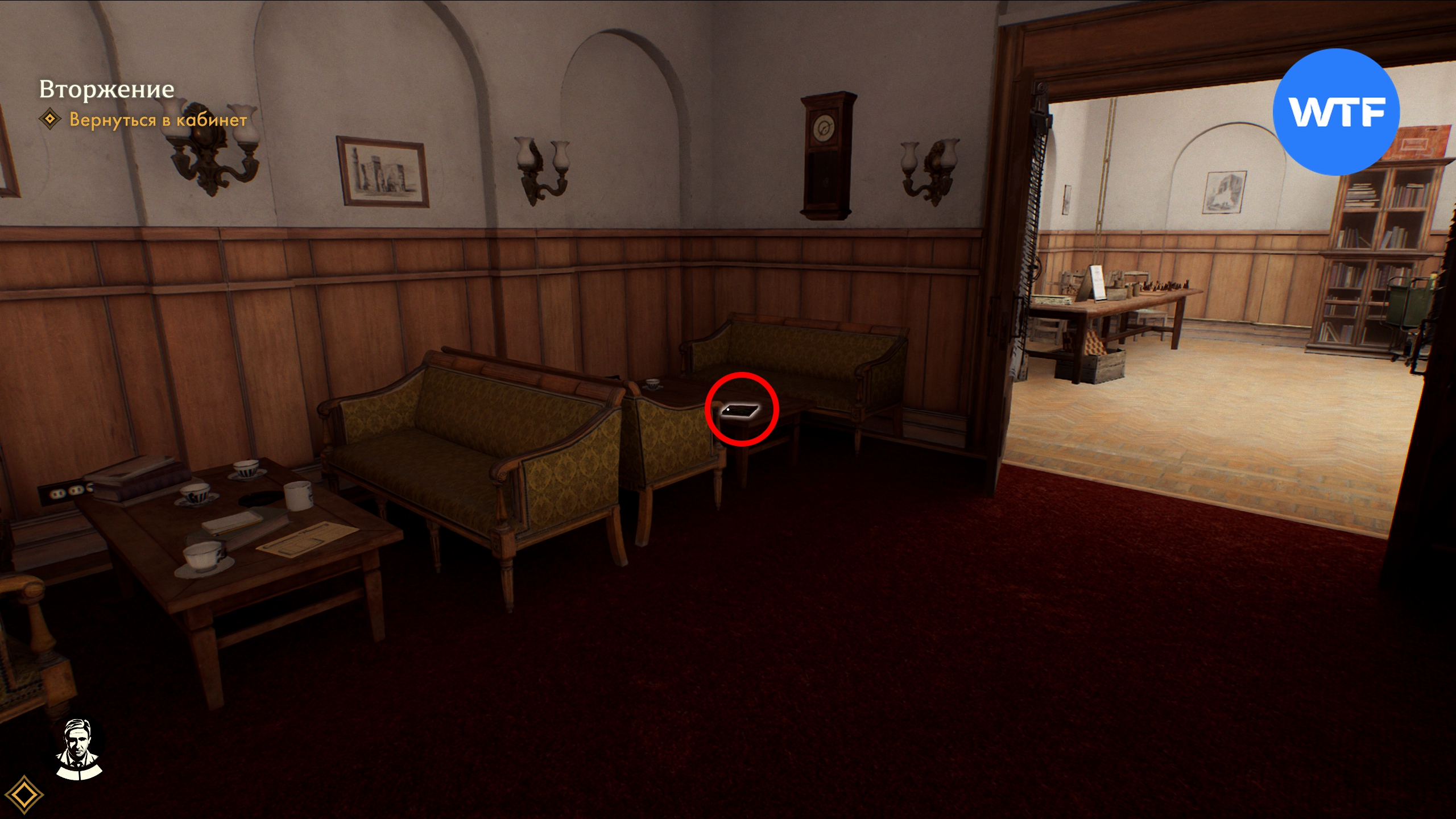 От предыдущей заметки пройдите в следующую комнату и возьмите комикс «Чудные времена №1» с зеленого дивана.