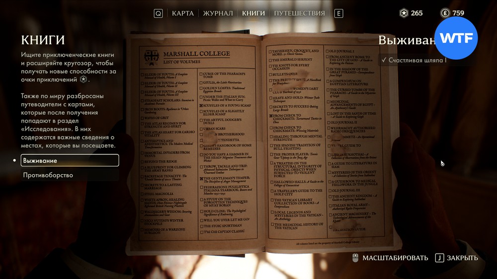 Найдя первую приключенческую книгу, вы разблокируете специальный раздел в своем журнале, где есть полный список того, что вам нужно собрать. Все книги разделены на несколько типов, в зависимости от навыка который они дают.