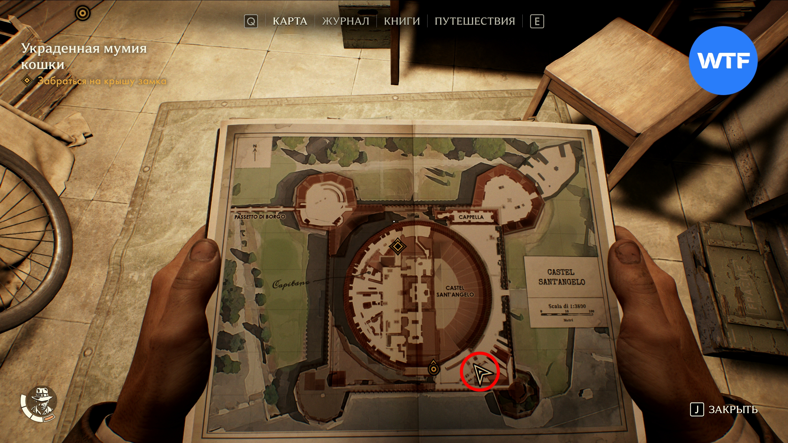 Свою первую приключенческую книгу вы найдете в Бастионе Святого Иоанна, в той же комнате, где подбираете ключ от сторожки, чтобы продвинуться дальше по сюжету и забраться на крышу. Красная книга будет лежать на деревянном ящике у шкафчиков.
