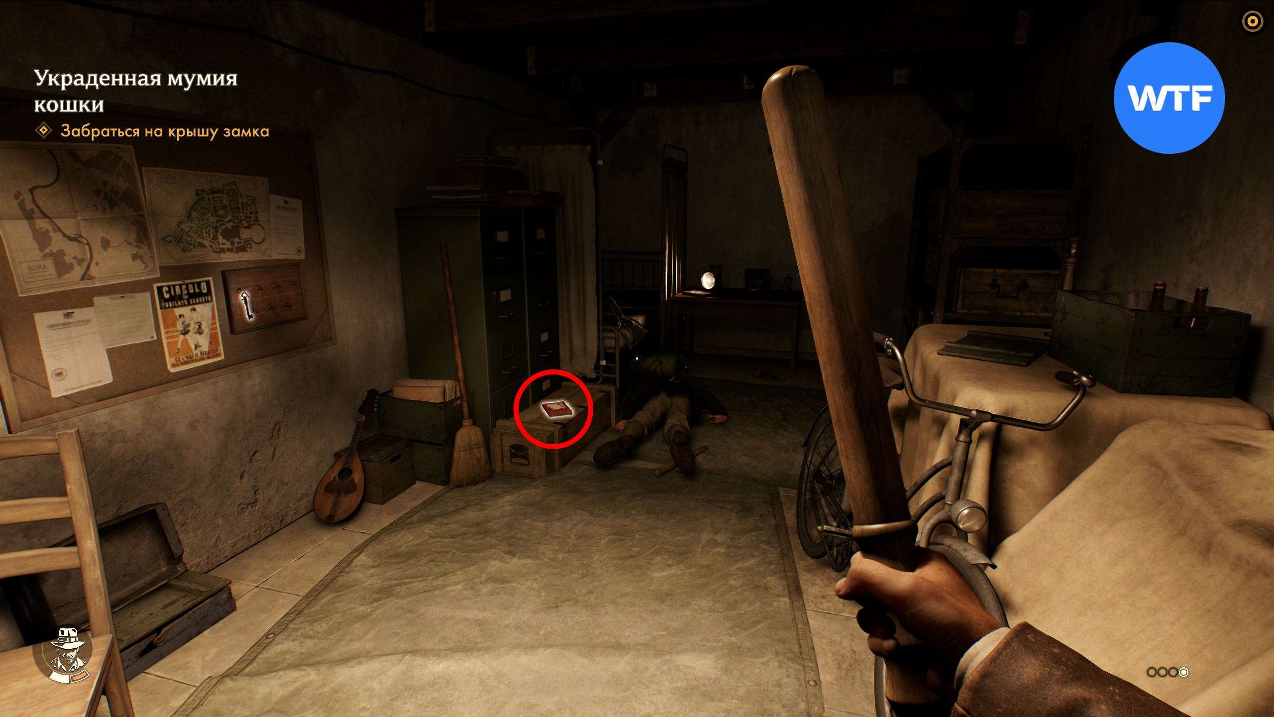 После того как заберетесь на крышу замка по строительным лесам, вы будете проходить через маленькую комнату с алтарем и окном, выходящим во Двор ангела, патрулируемый фашистом и собакой.