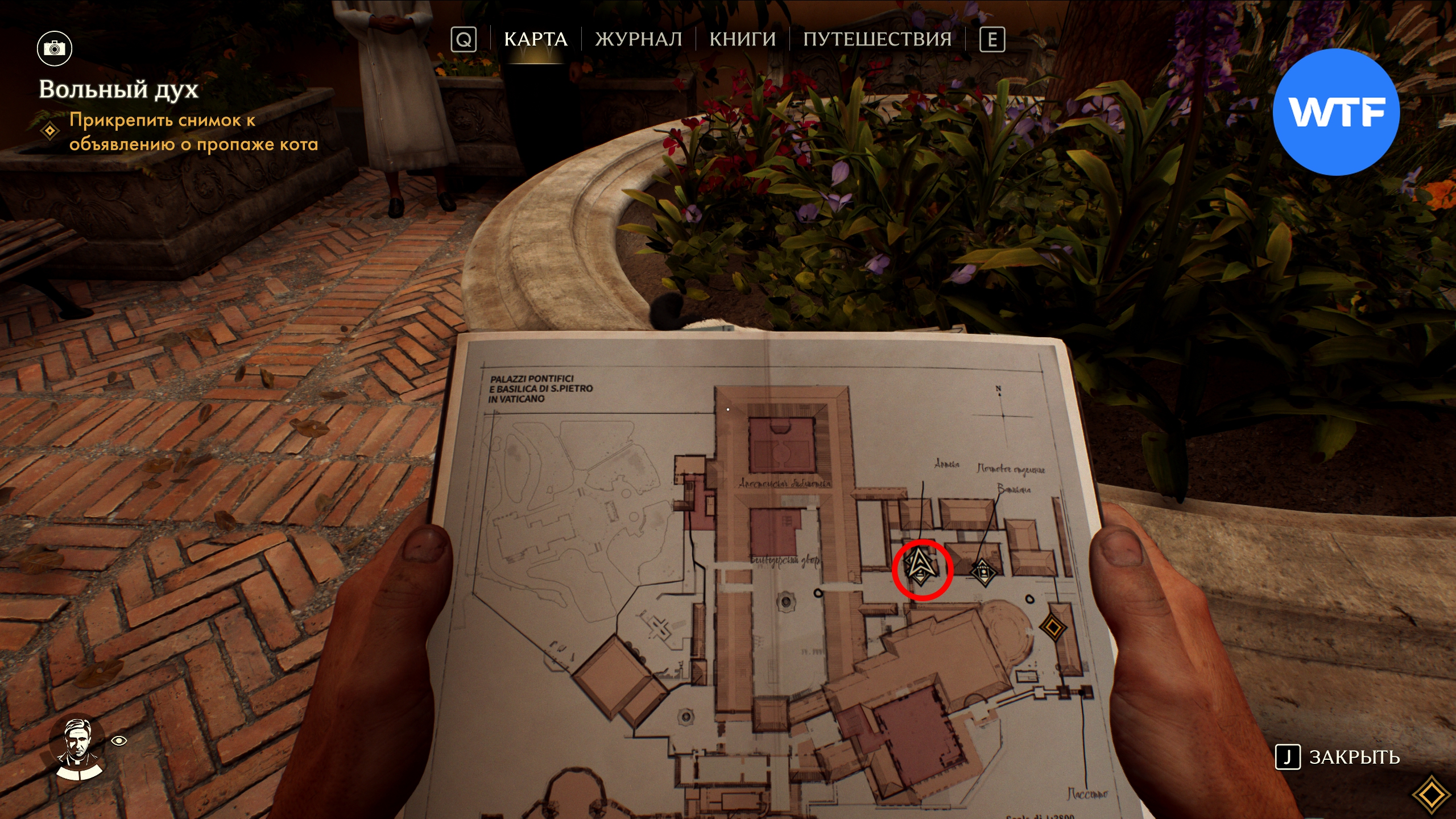Вольный дух в Indiana Jones and the Great Circle — это одна из тайн, которую можно найти в Ватикане. Чтобы её завершить, вам нужно найти и сфотографировать черного кота, который пропал у отца Бьянки.