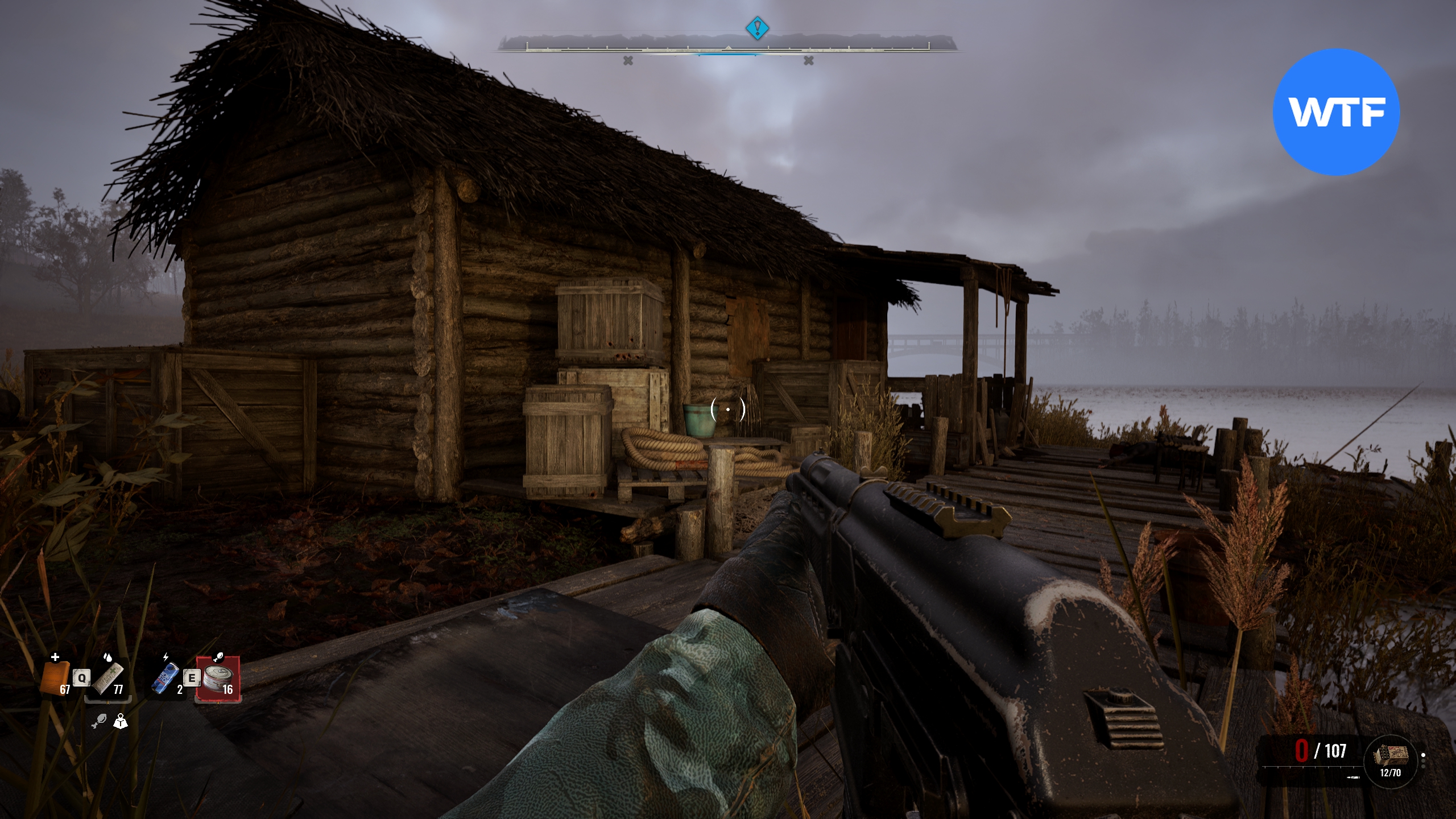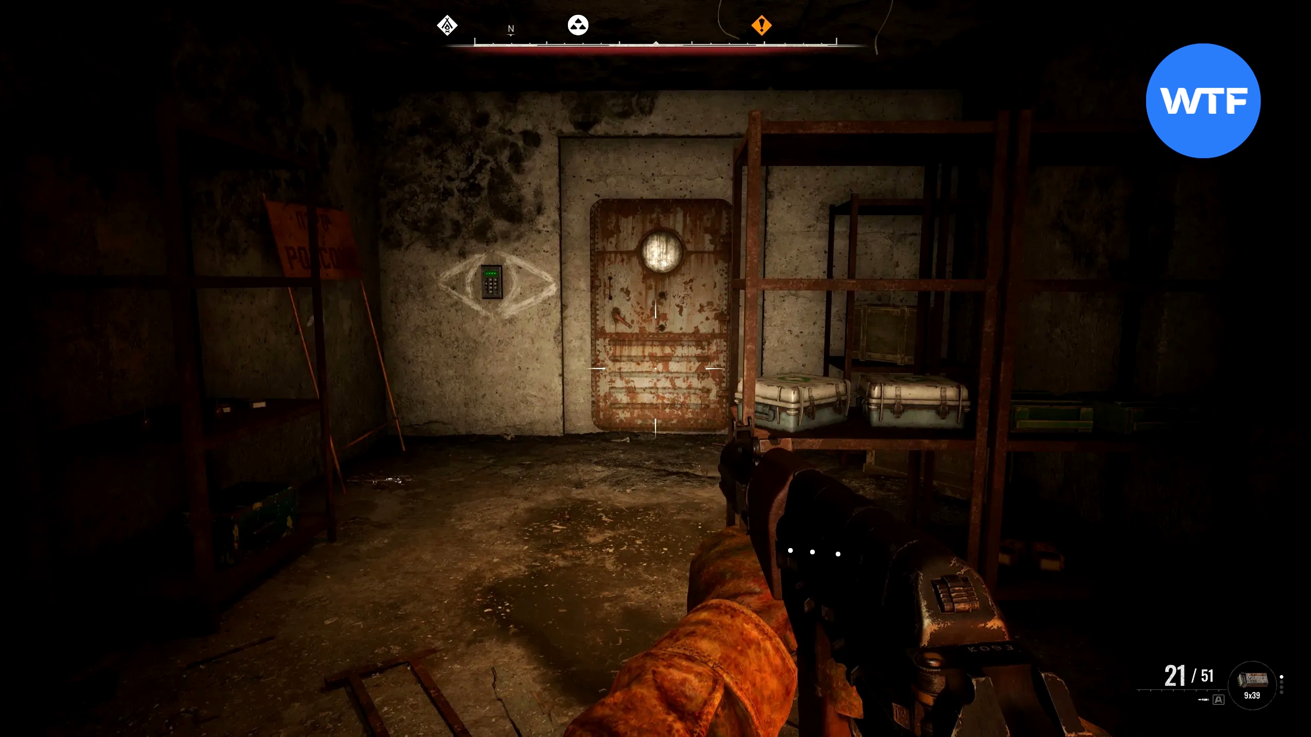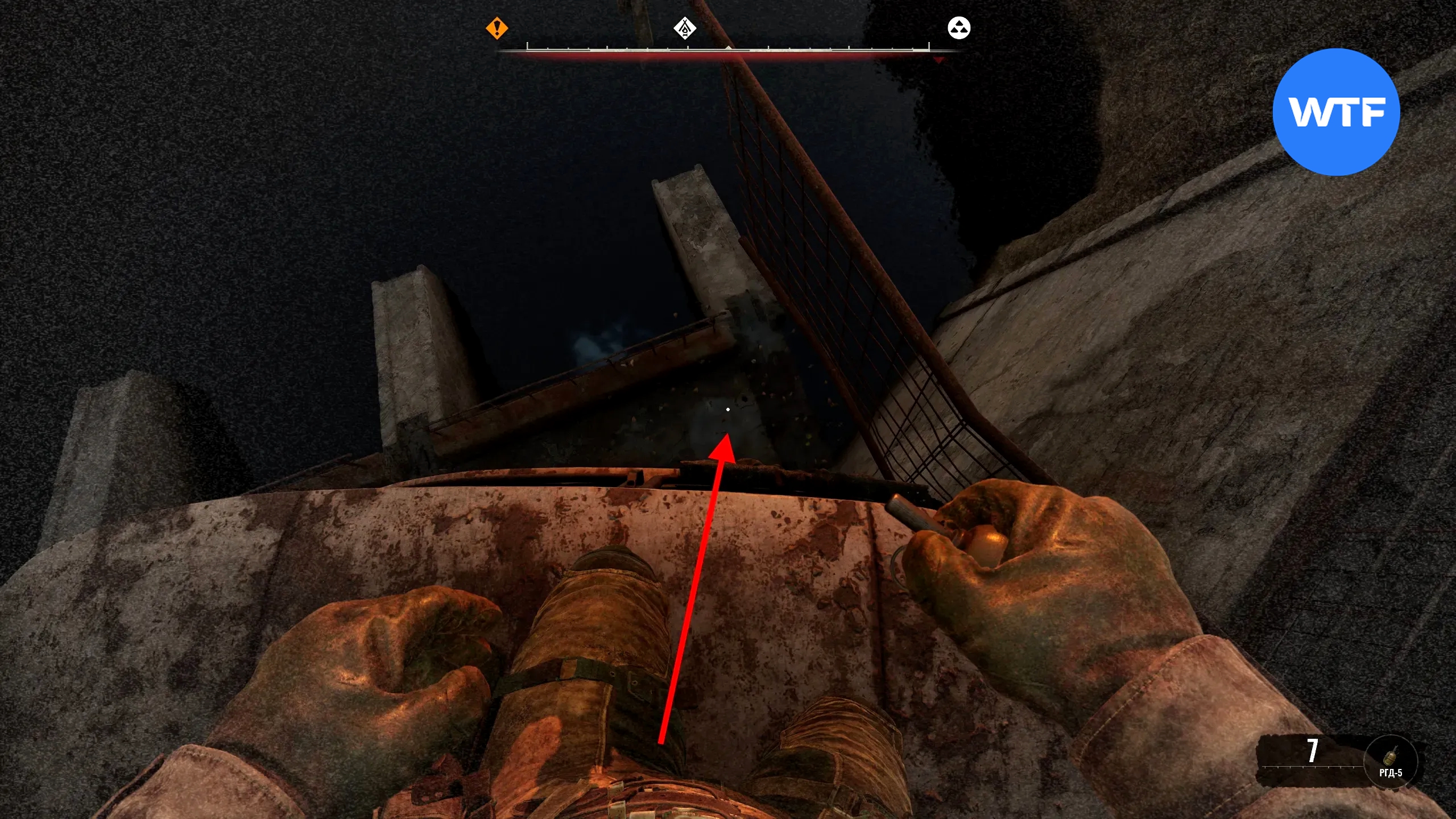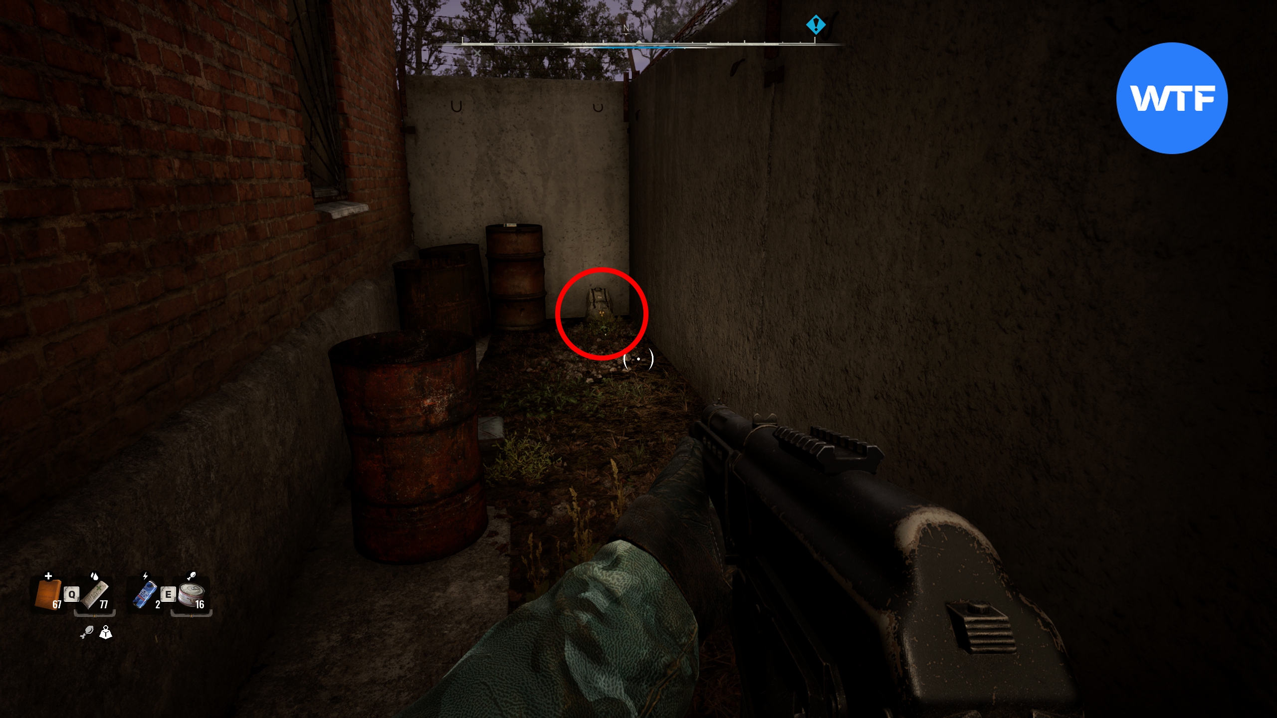 Такой тайник есть в регионе Янтарь к юго-западу от одноименного завода. Вам нужно забраться на крышу автобуса и оттуда спуститься вниз к воде, используя аномалию с летающими камнями. Затем введите код 5578, чтобы открыть дверь и забрать штурмовую винтовку.
