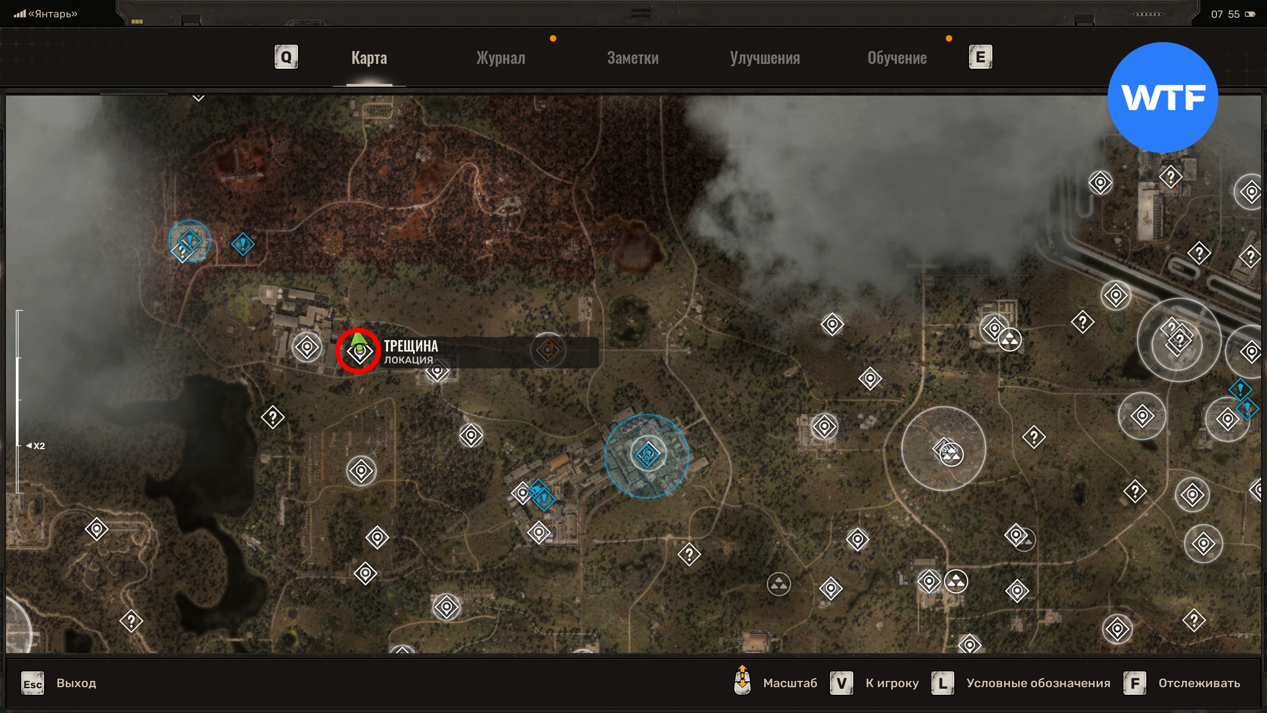 Чертеж прорезиненного покрытия можно найти в заполненной ядовитым газом Трещине в северной части региона Янтарь. Ориентируйтесь на свечение артефакта, которое легко заметить сверху (см. скриншот 3). Сумка с флешкой будет лежать прямо рядом с ним.