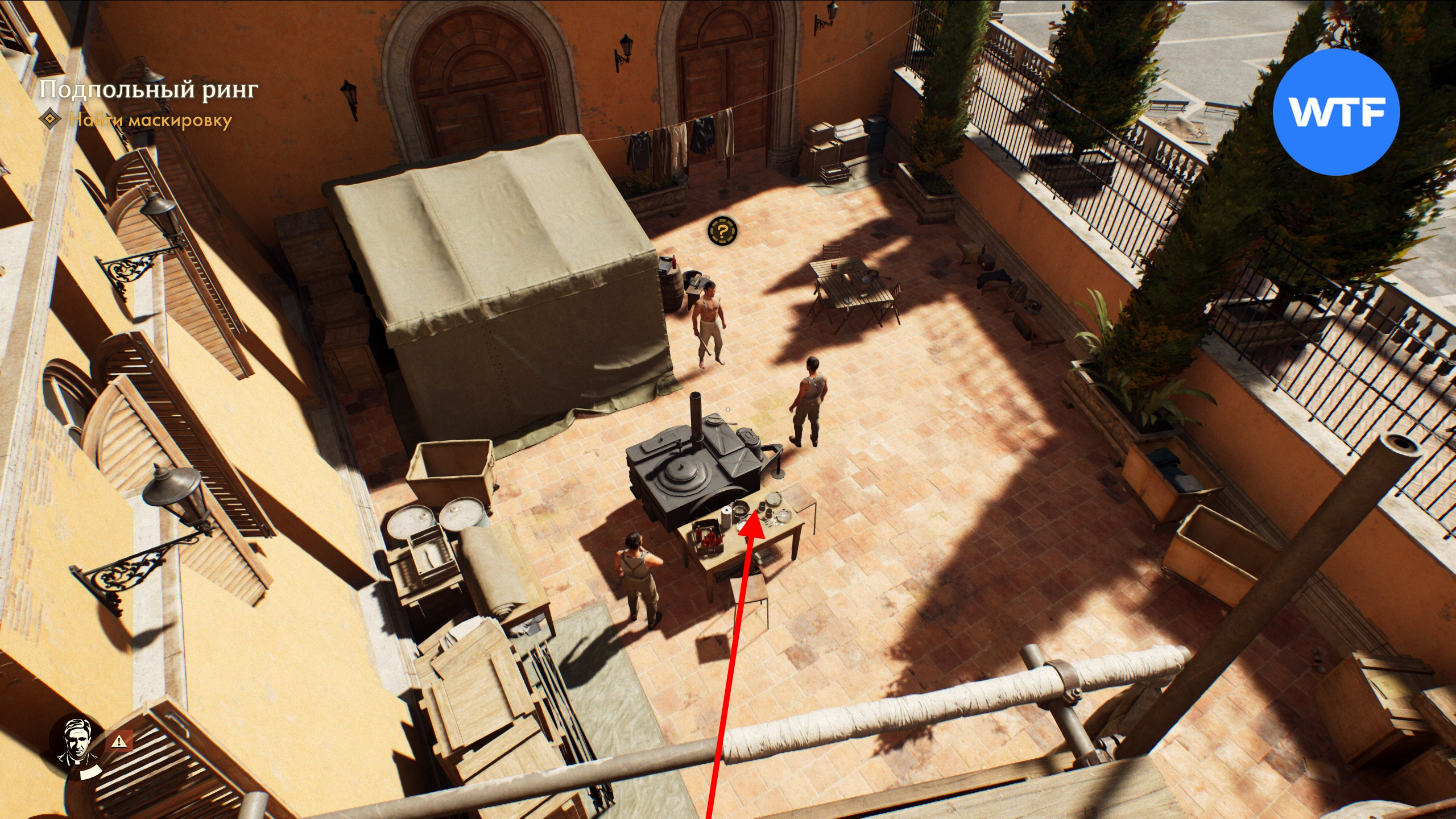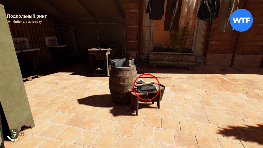 Чтобы найти маскировку, вернитесь обратно в переулок и идите по нему до конца. Во Дворе башни Борджиа поверните налево за зеленым грузовиком и идите вперед, пока не увидите проход в арку справа.