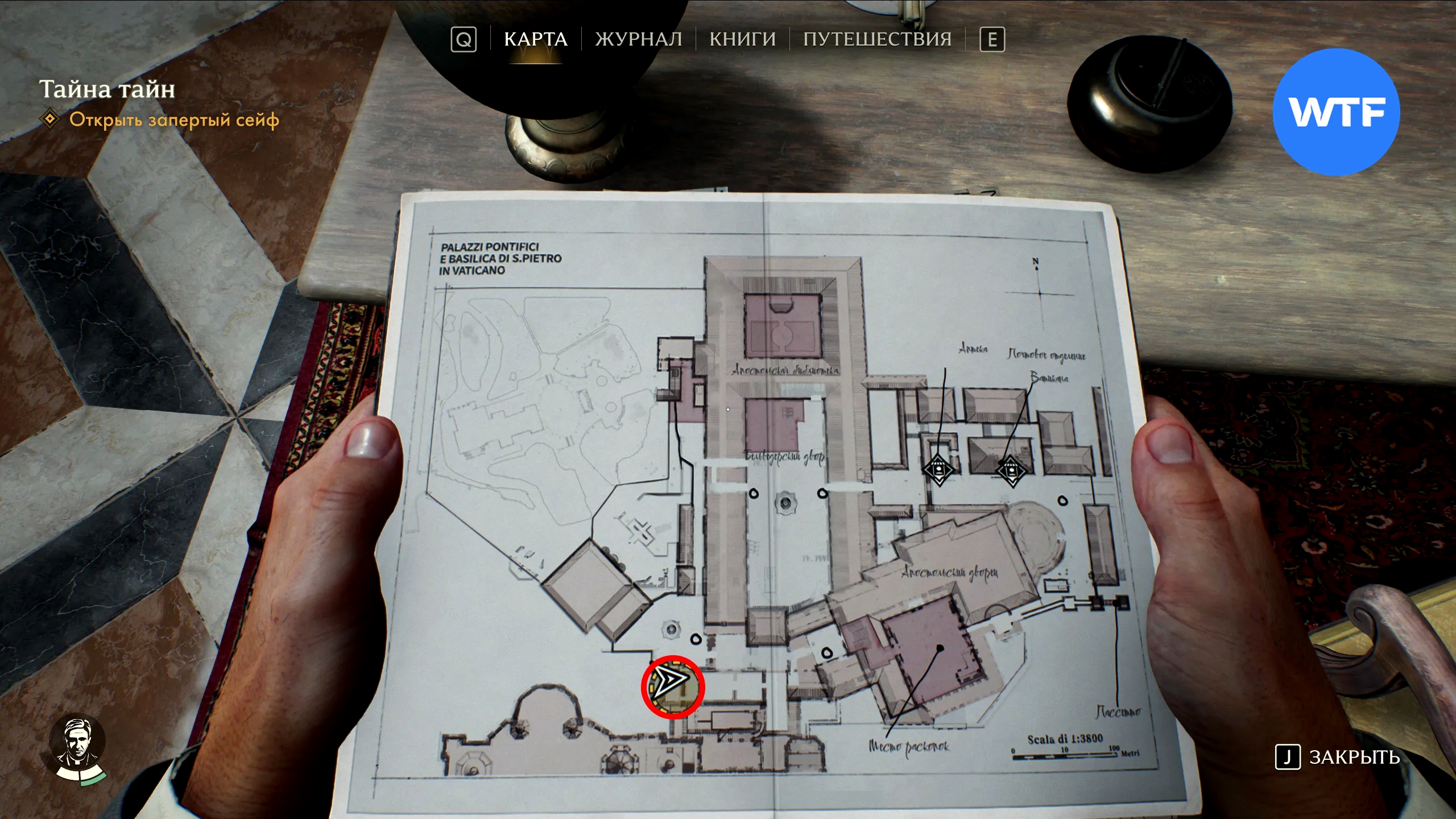 После выполнения побочного квеста «Пропавшая монахиня» Джина оставит для вас записку внутри Библии в главном зале Сикстинской капеллы. В этой записке будет написан код. В сейфе лежит послание от информатора для Джины и 80 лир.