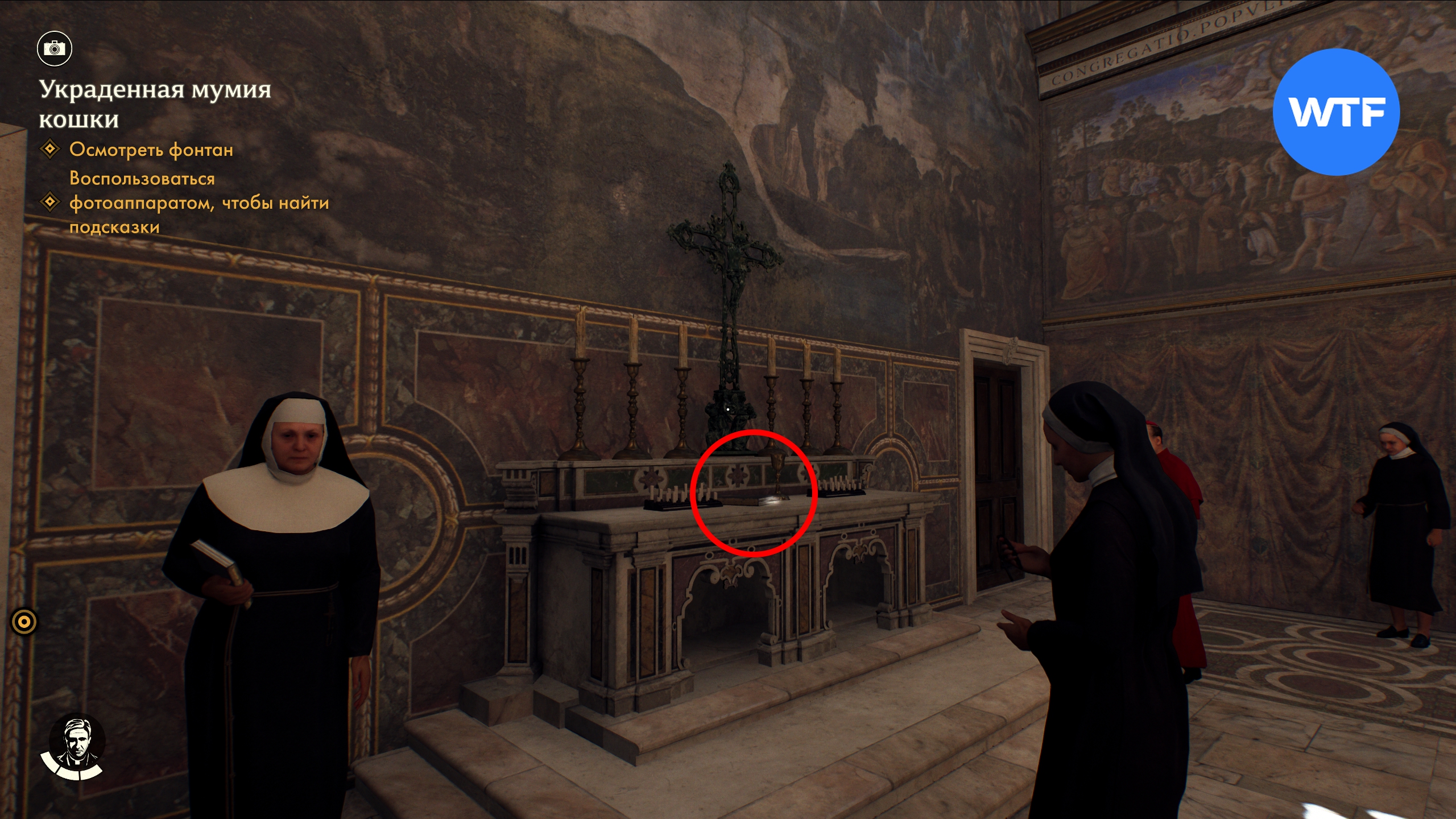 Познакомившись с Джиной по сюжету, вы сможете получить от неё подработку «Пропавшая монахиня». Выполнение этого задания приведет вас в Музейное крыло, на выходе их которого будет стоять сейф.