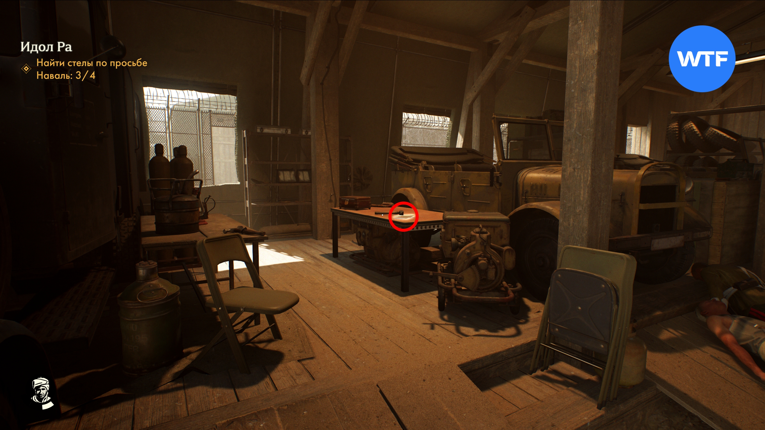 Собрав четыре стелы, вы вместе с Джиной отправитесь на базу нацистов на севере Гизы, чтобы найти там кабинет Фосса в рамках сюжетного здания «Идол Ра». После того как вы спустите флаг и войдете в здание с кабинетом, осмотрите правую дальнюю часть первого этажа, чтобы найти там сейф.