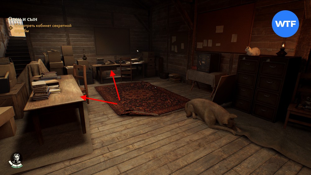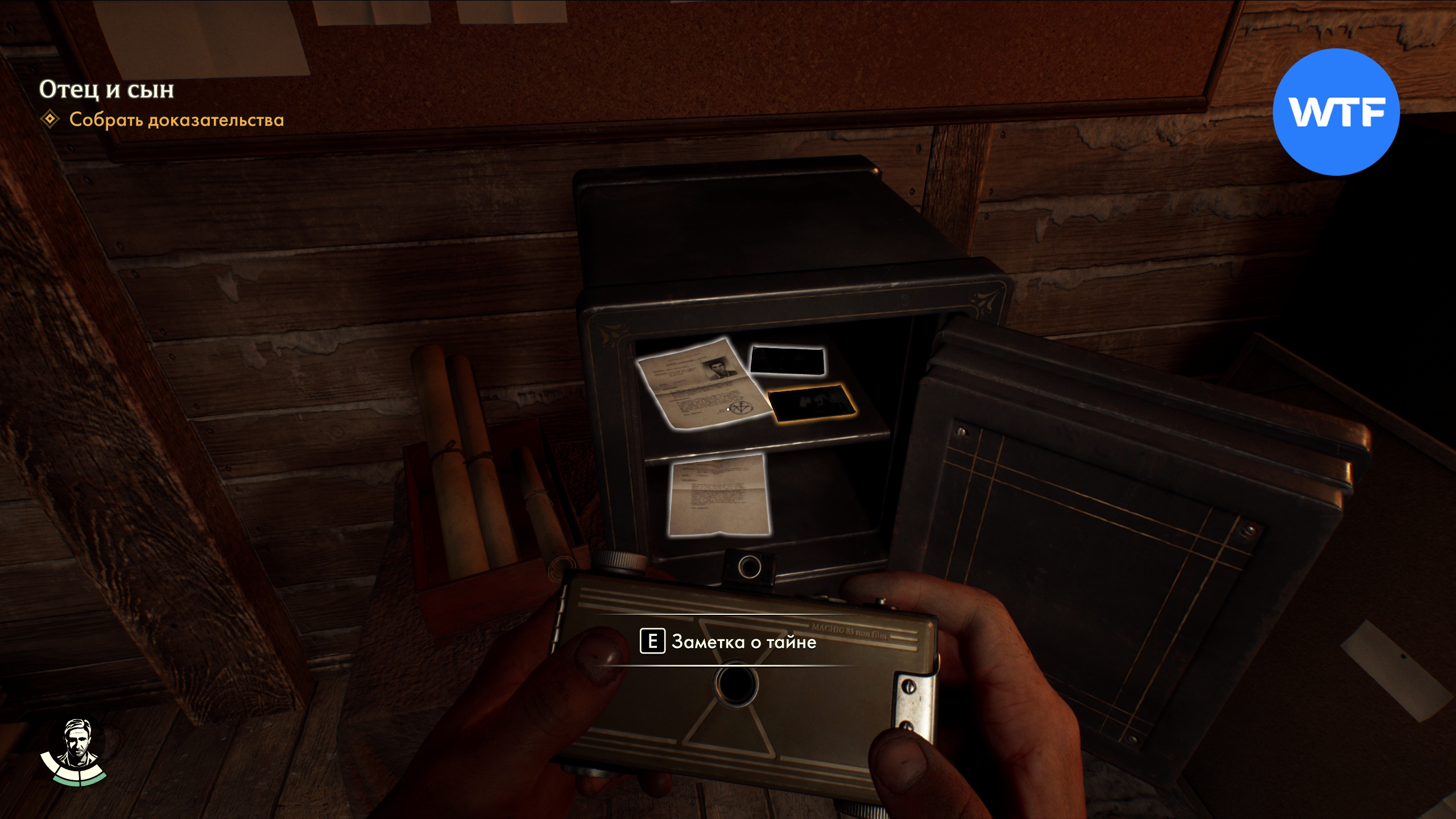 Соберите секретные документы, лежащие внутри сейфа, чтобы завершить выполнение тайны «Отец и сын» и получить 100 очков приключений. Прежде чем уходить, не забудьте прихватить книгу приключений Удавка, лежащую на столе рядом.