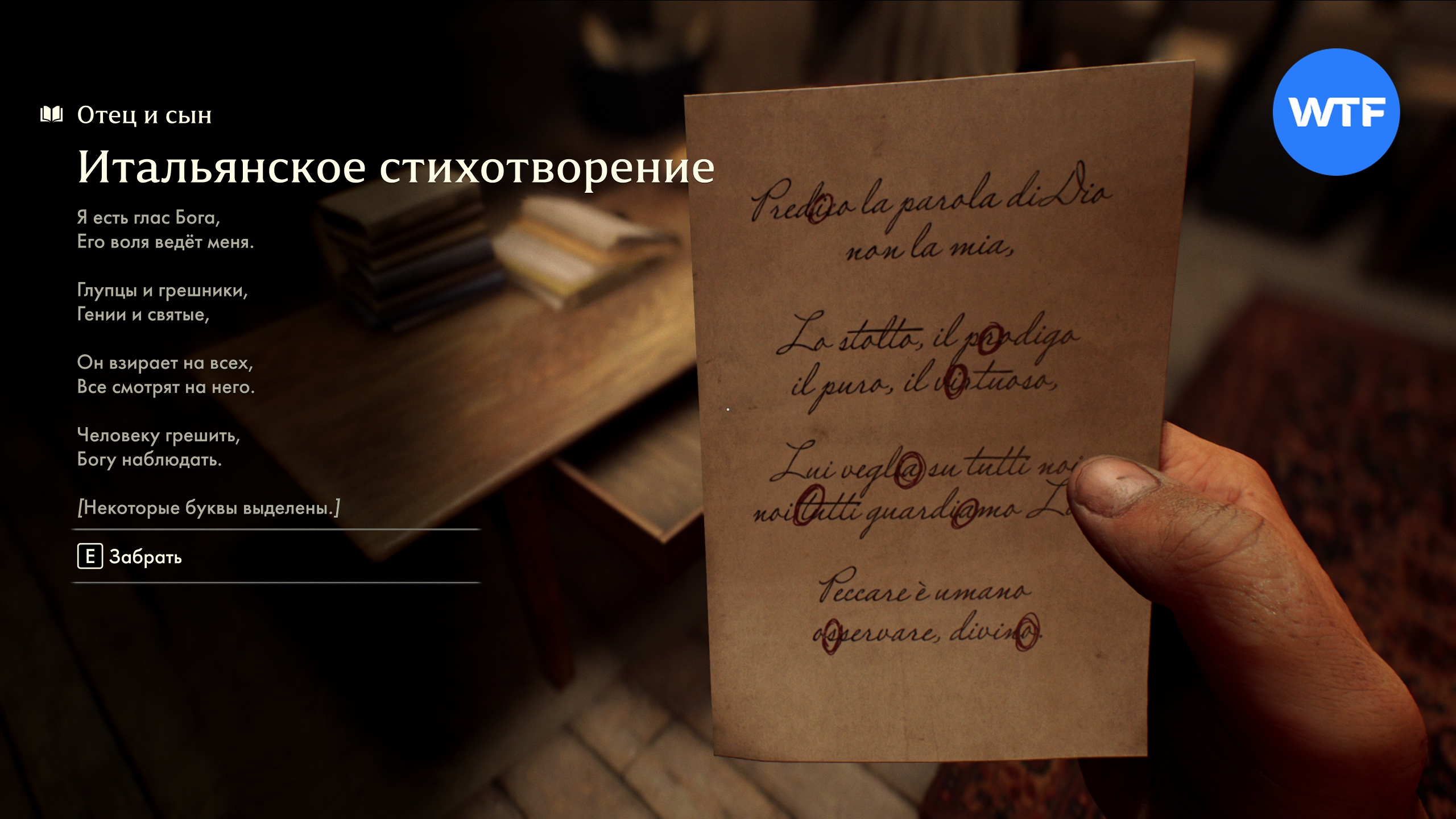 Тайна «Отец и сын» откроется вам после выполнения побочного задания «Пропавшая монахиня» от Джины (вы знакомитесь с ней по сюжету) и получения ключа Джулианны.