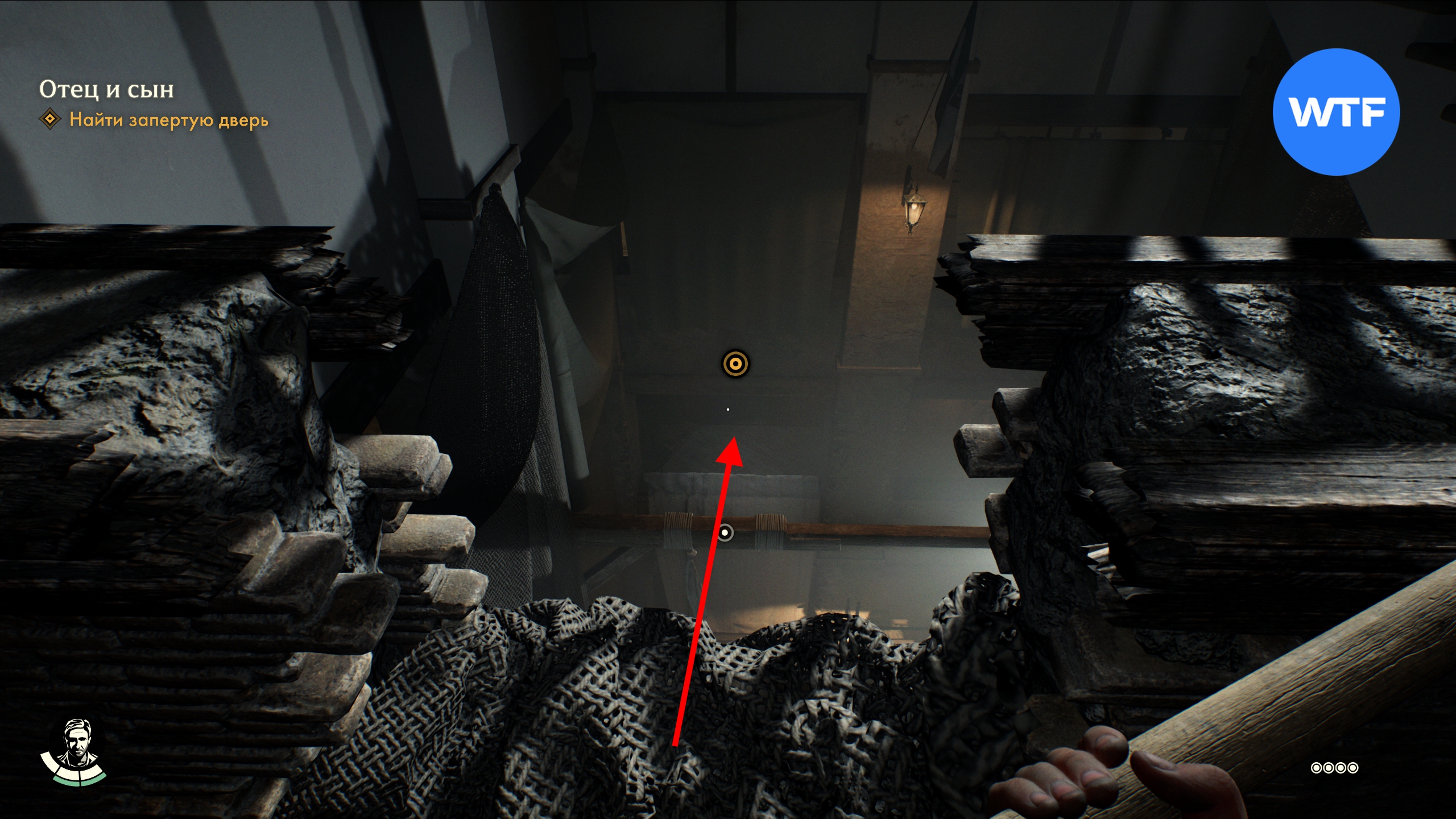 Запертая дверь находится в верхней части Башни Борджиа. После квеста из комнаты для допросов нужно спуститься по лестнице вниз, а затем использовать крюк, чтобы зацепиться за деревянную балку и перебраться на другую сторону.