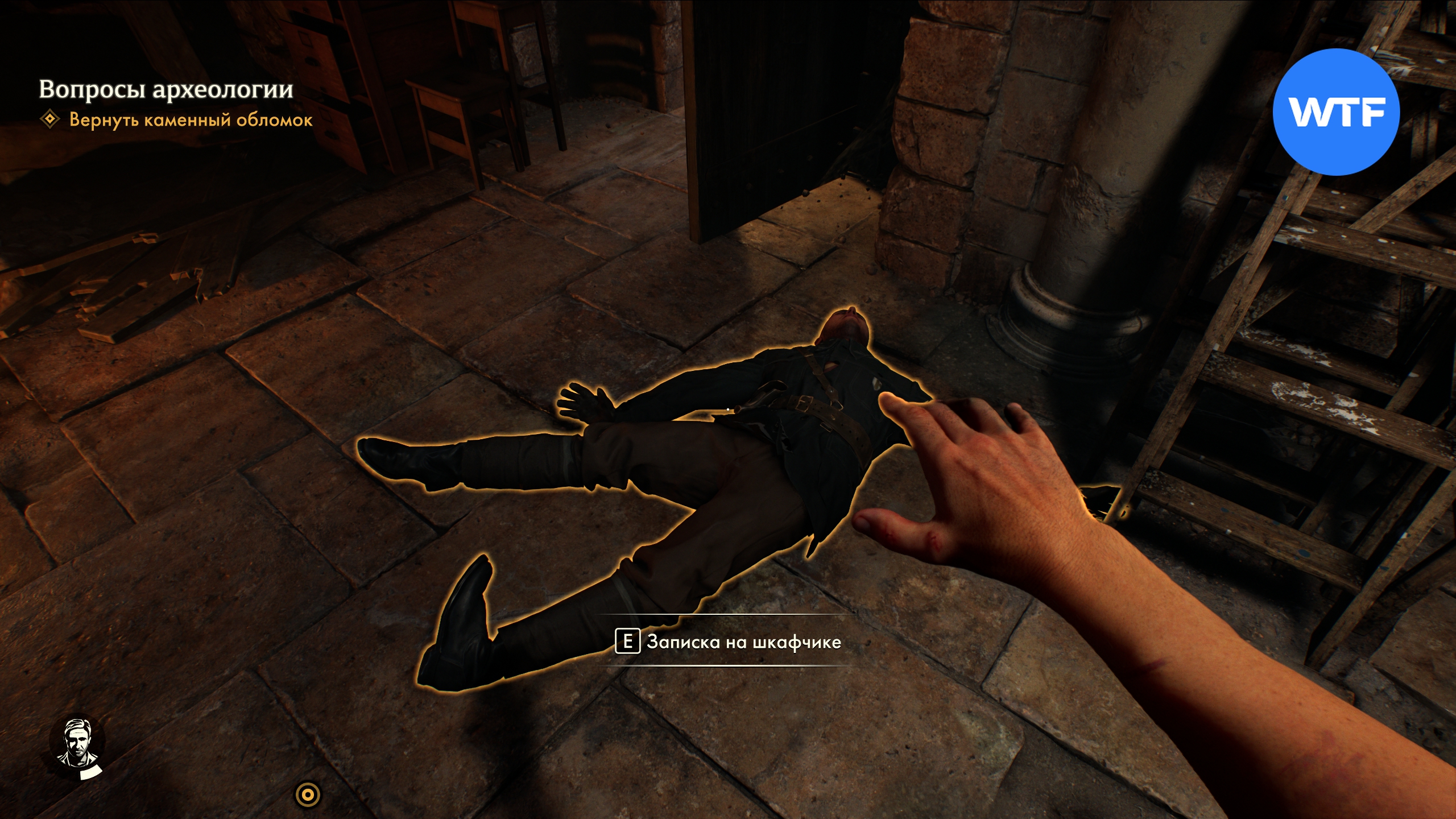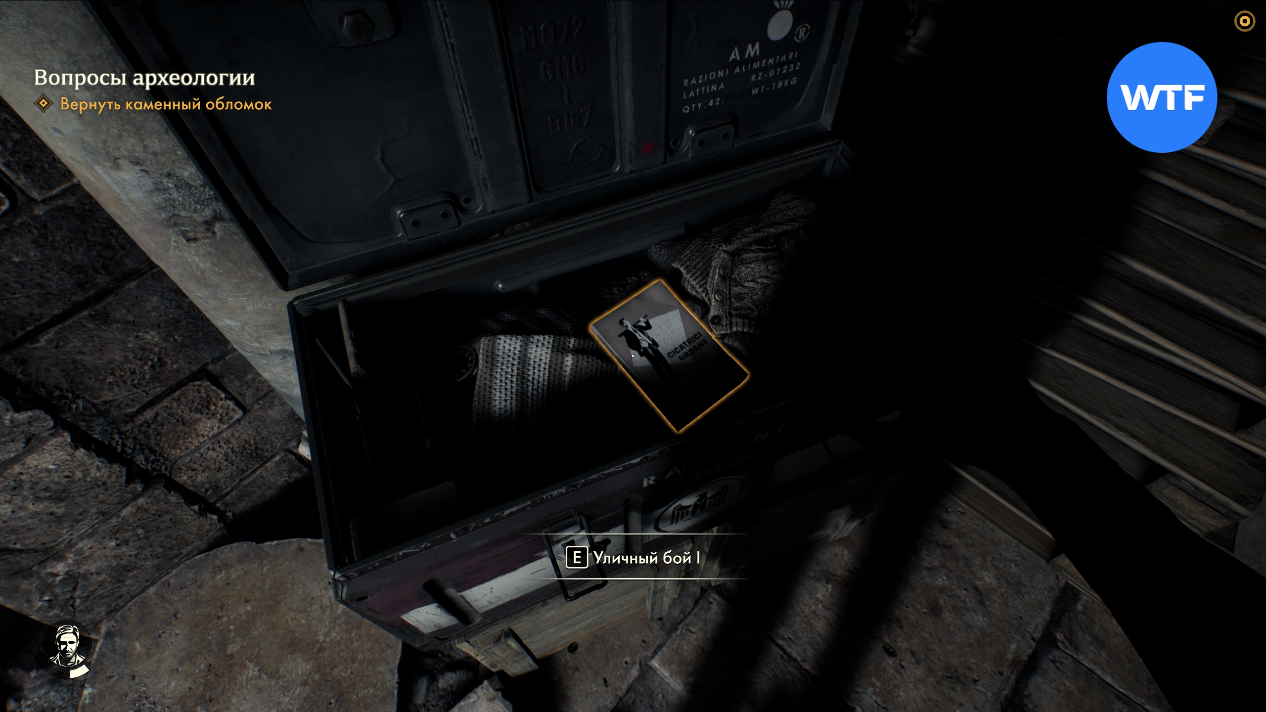 Получив ключ от подвала, отправляйтесь по указанному адресу и спускайтесь вниз. После того как вы подберете каменный обломок по квесту, начнется кат сцена, где в подвал зайдет фашист.