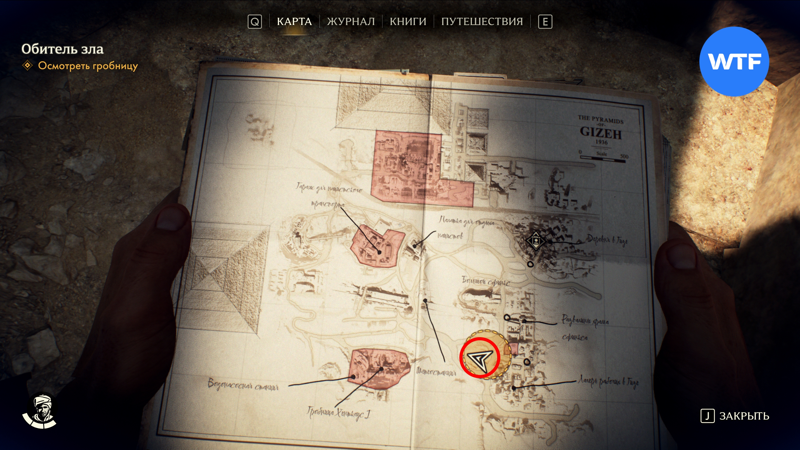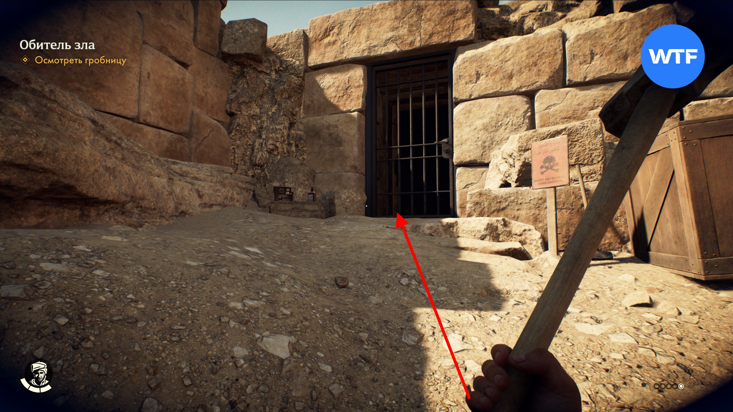 Из Доклада о привидениях можно узнать, что гробница к западу от лагеря рабочих закрыта, так как оттуда доносятся подозрительные звуки. Вторая записка содержит фото входа, а ключ отпирает дверь.