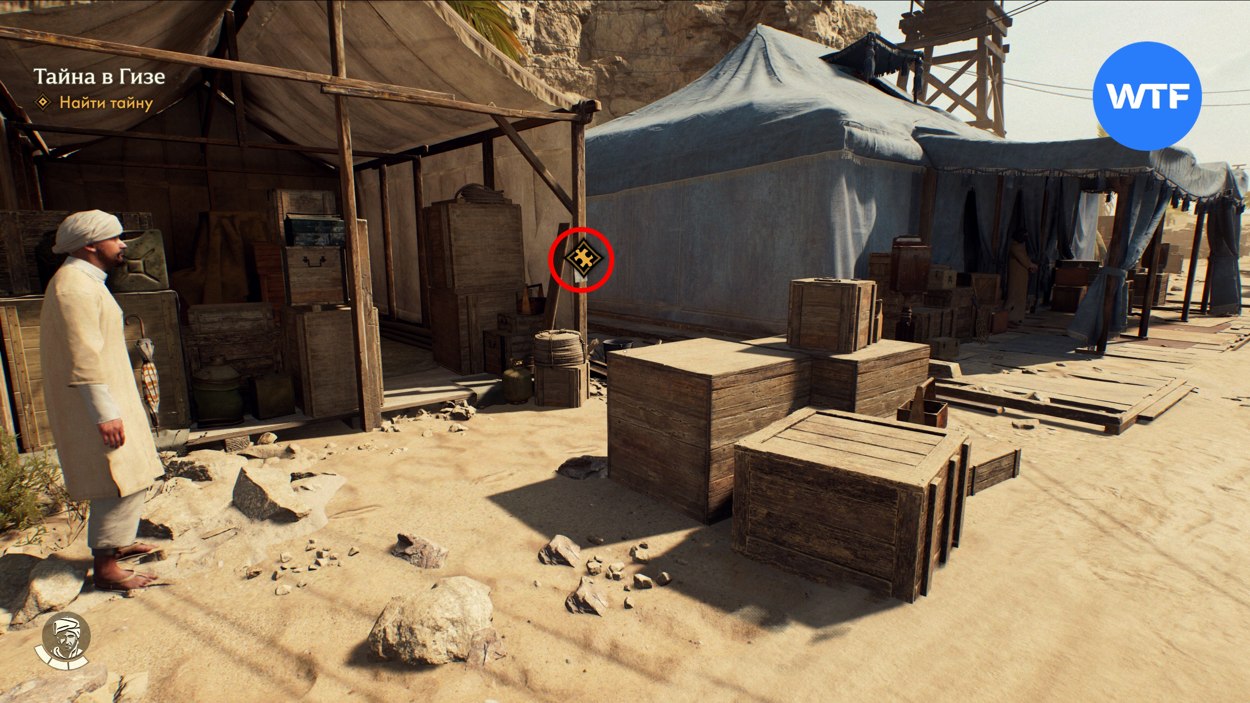 Эта тайна почти наверняка будет одной из первых, которые вы встретите в Гизе. Объявление о розыске висит на деревянной балке слева от синего шатра, где вы встречаетесь с Наваль.