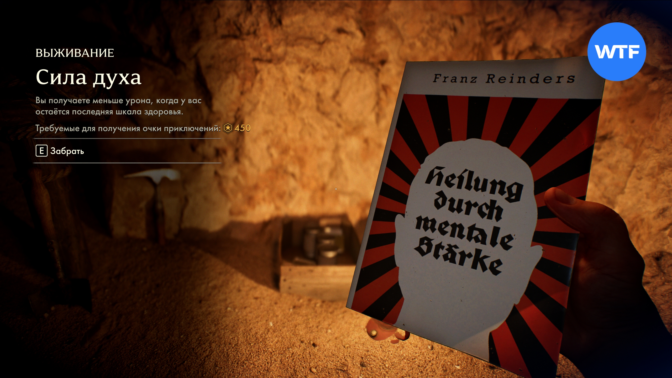 В итоге вы доберетесь до небольшой пещеры, внутри которой найдете тело вора, погибшего под обвалом, а также Записку расхитителя и приключенческую книгу Сила духа. При её использовании вы получаете меньше урона, когда у вас остается последняя шкала здоровья.
