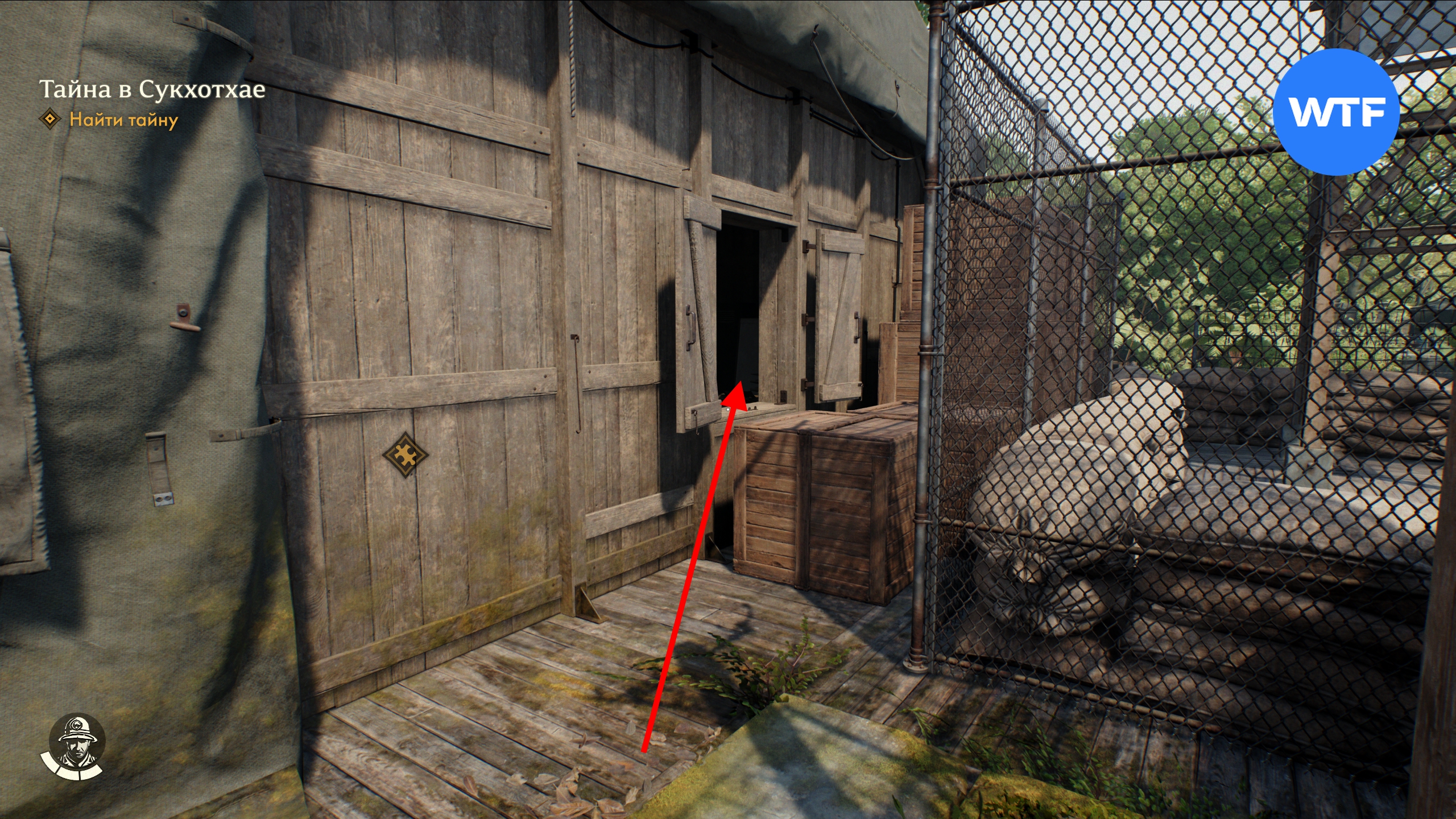Забраться внутрь можно через окно. Это лагерь очень хорошо охраняется, поэтому для начала мы рекомендуем вам раздобыть форму Королевской армии — эта маскировка позволит вам передвигаться, не привлекая внимания.