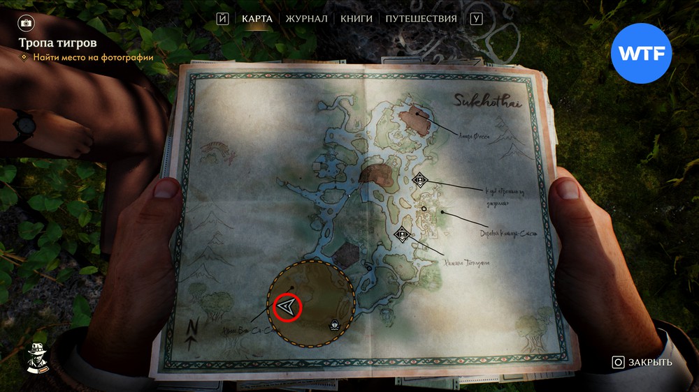 Чтобы найти место на фотографии, отправляйтесь в юго-западную часть региона Сукхотхай, к причалу Храм Ват-Си-Савай. Игра отмечает достаточно большую область для поисков, но ниже мы дадим более подробные инструкции.